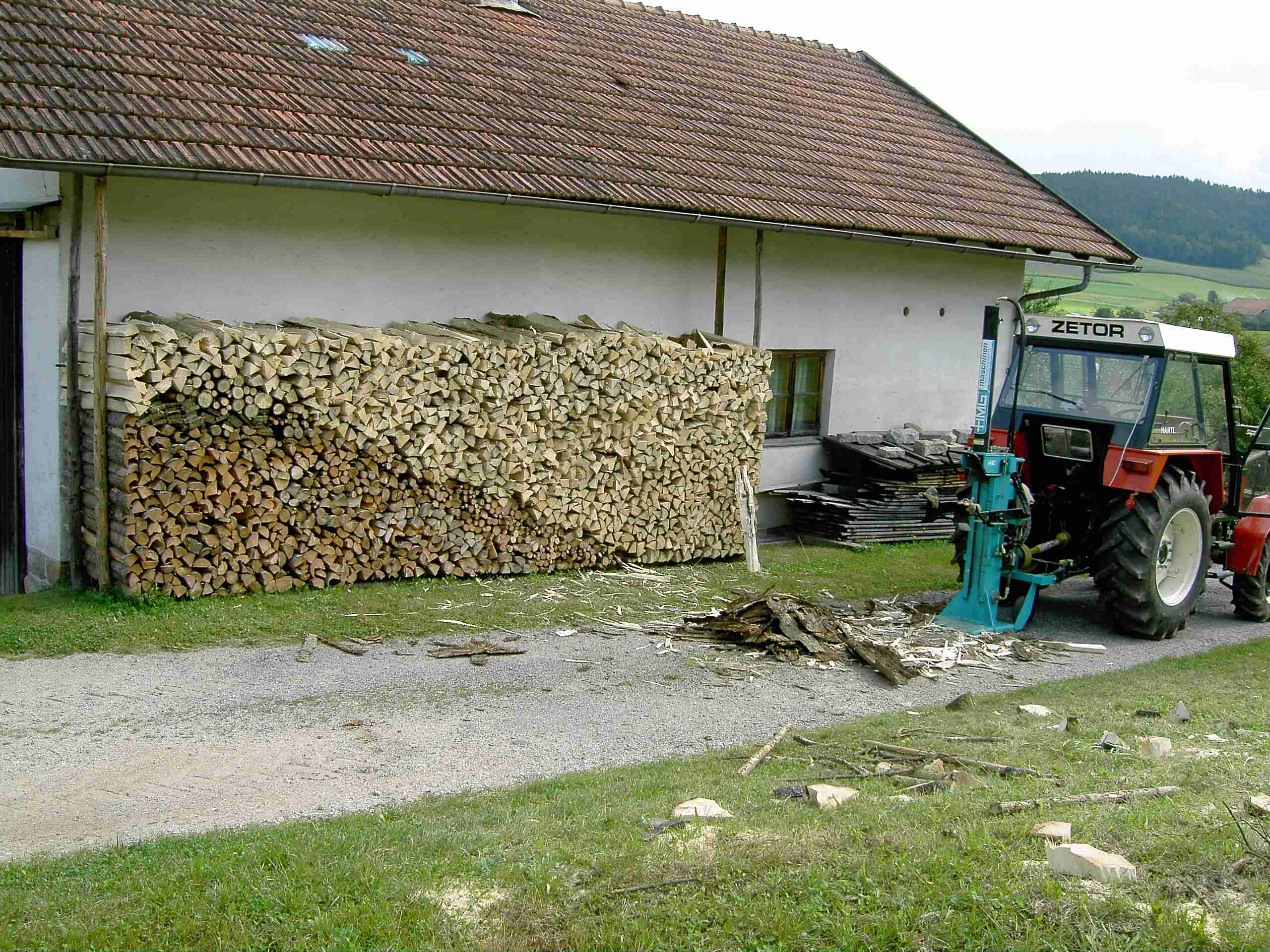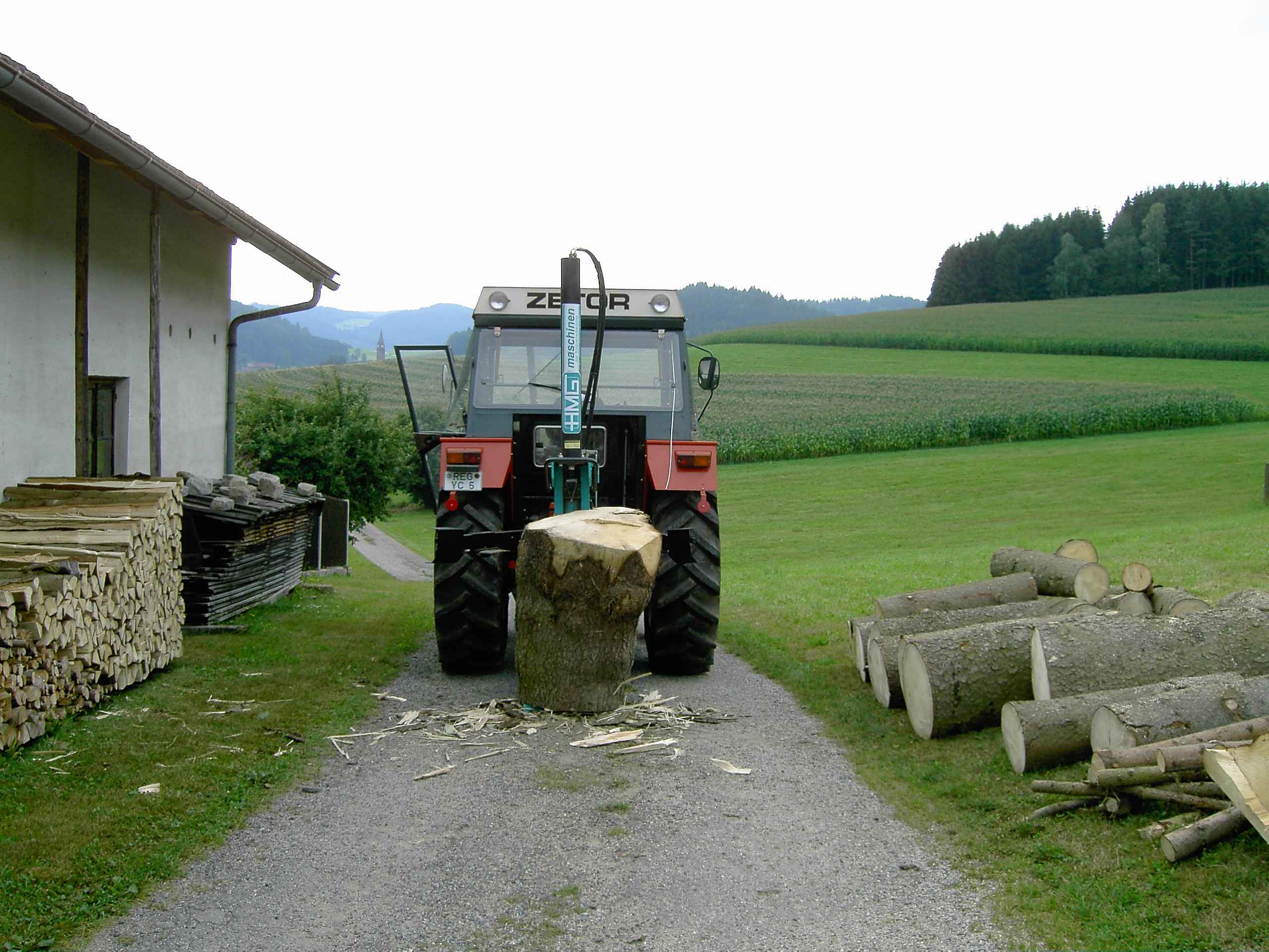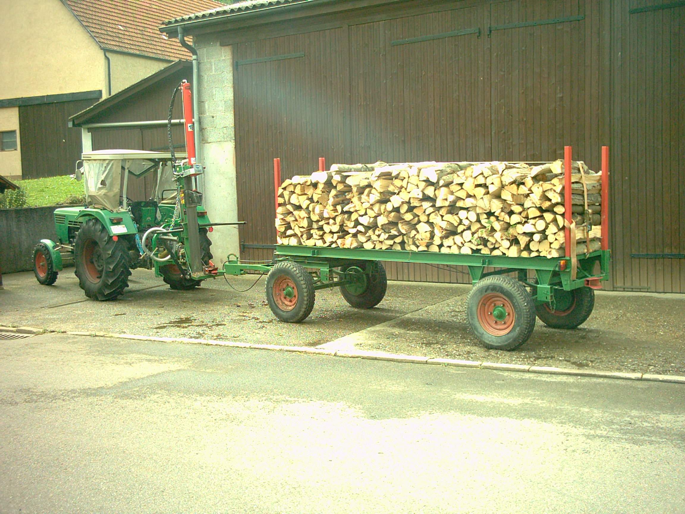 natürlich macht es mit dem Trac extra Spaß, ich bin als Junge schon gern mit meinem Vater in Wald. Habe auch deswegen Wald zugekauft und den Betrieb etwas mehr auf Forst ausgerichtet. Den Trac habe ich mir zum 50. Geburtstag geleistet und habe ihn jetzt etwa ein halbes Jahr. Gearbeitet habe ich noch nicht viel mit ihm, da im Sommer die Landwirtschaft vorrang hat. Auf dem einen Bild siht man den den Bestand, viel schwaches und krummes Holz. Das Polder auf dem anderen Bild ist alles Aspe (Zitterpappel), ist für Brennholz nur bedingt tauglich. Das Holz, das zersägt ist, ist Rot- und Hainbuche, und wird verkauft. Das minderwertige Holz, reicht mir schon mehrere Jahre zum Heizen, alle wollen Buche. Hier noch ein Bild, wo der trac fur eine gute Tat zweckentfremdet wurde und zwei für Patrik