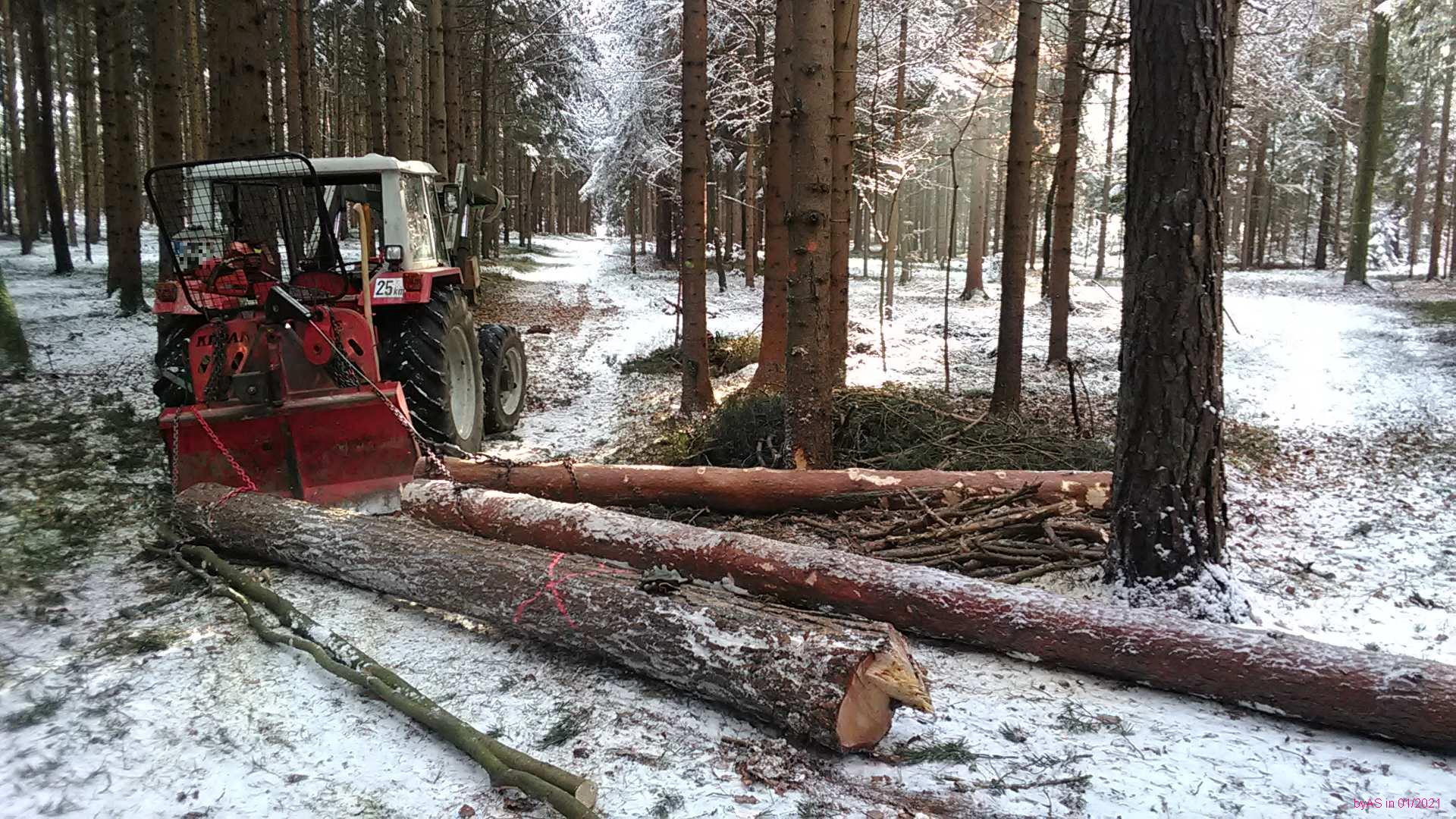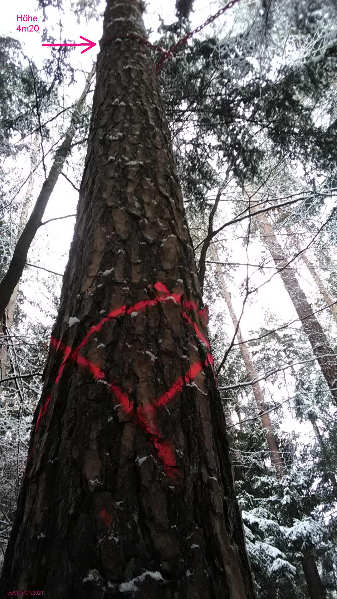 Diese Saison fälle ich für die eigene Säge. Weiter mit den krummen bzw. schief gewachsenen Kiefern ...