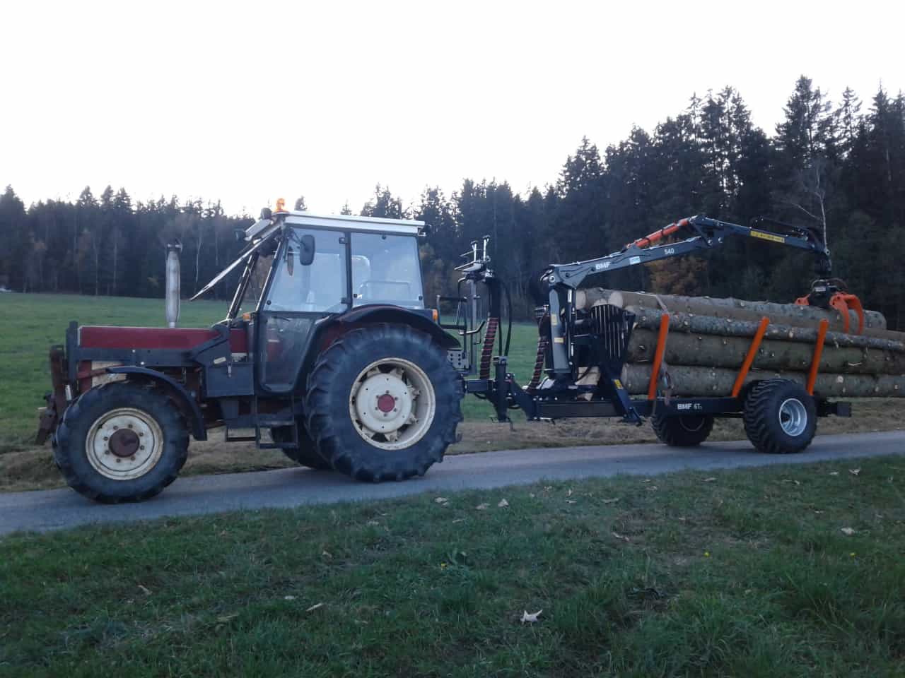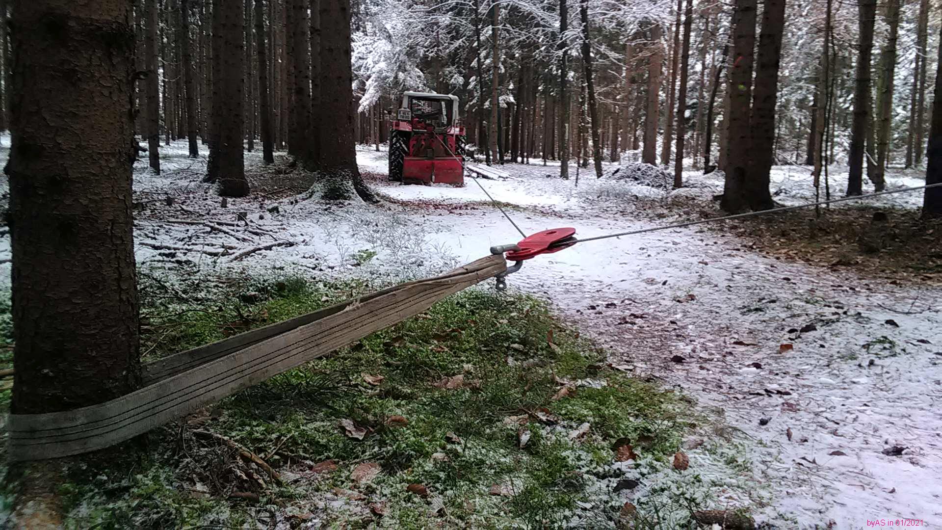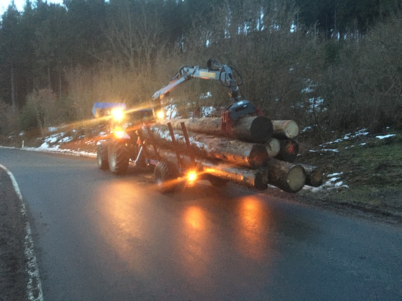 Der Kandidat. Starker Rückhänger. Kette in gut 4 m Höhe angehängt - auf dem Traktordach stehend ...
