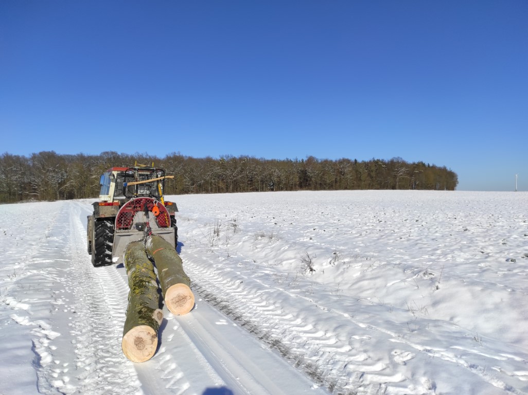 Habe aber nur eine Buche gefällt und einige Stämme gerückt.