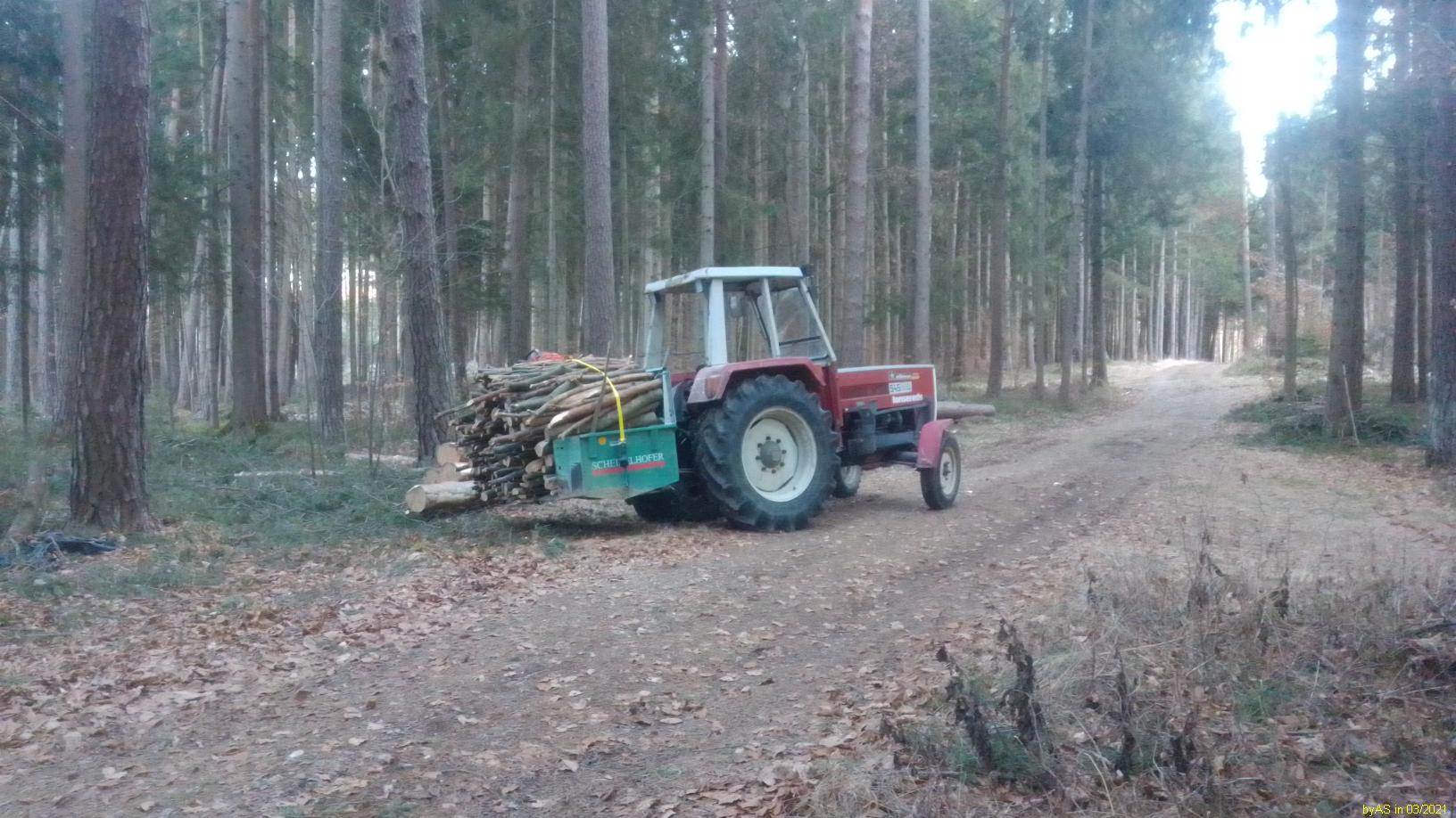 Eine (angeschobene) Douglasie (die für den Weg geopfert wurde) hat dann meinem Hanomag so ziemlich alles abverlangt.