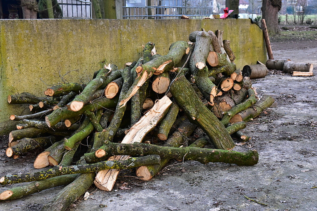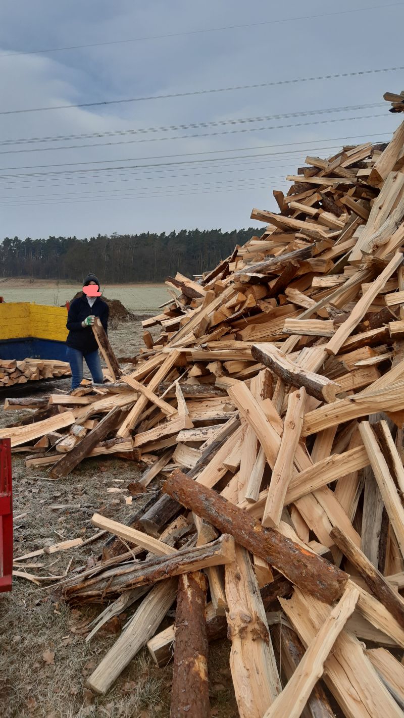 Heute haben wir angefangen die Holzberge abzutragen. Erst da merke ich das ich vielleicht noch 20 % nachspalten muss, weil die zum Verkauf gedachten Scheiter vielfach zu dick gespalten sind![]()