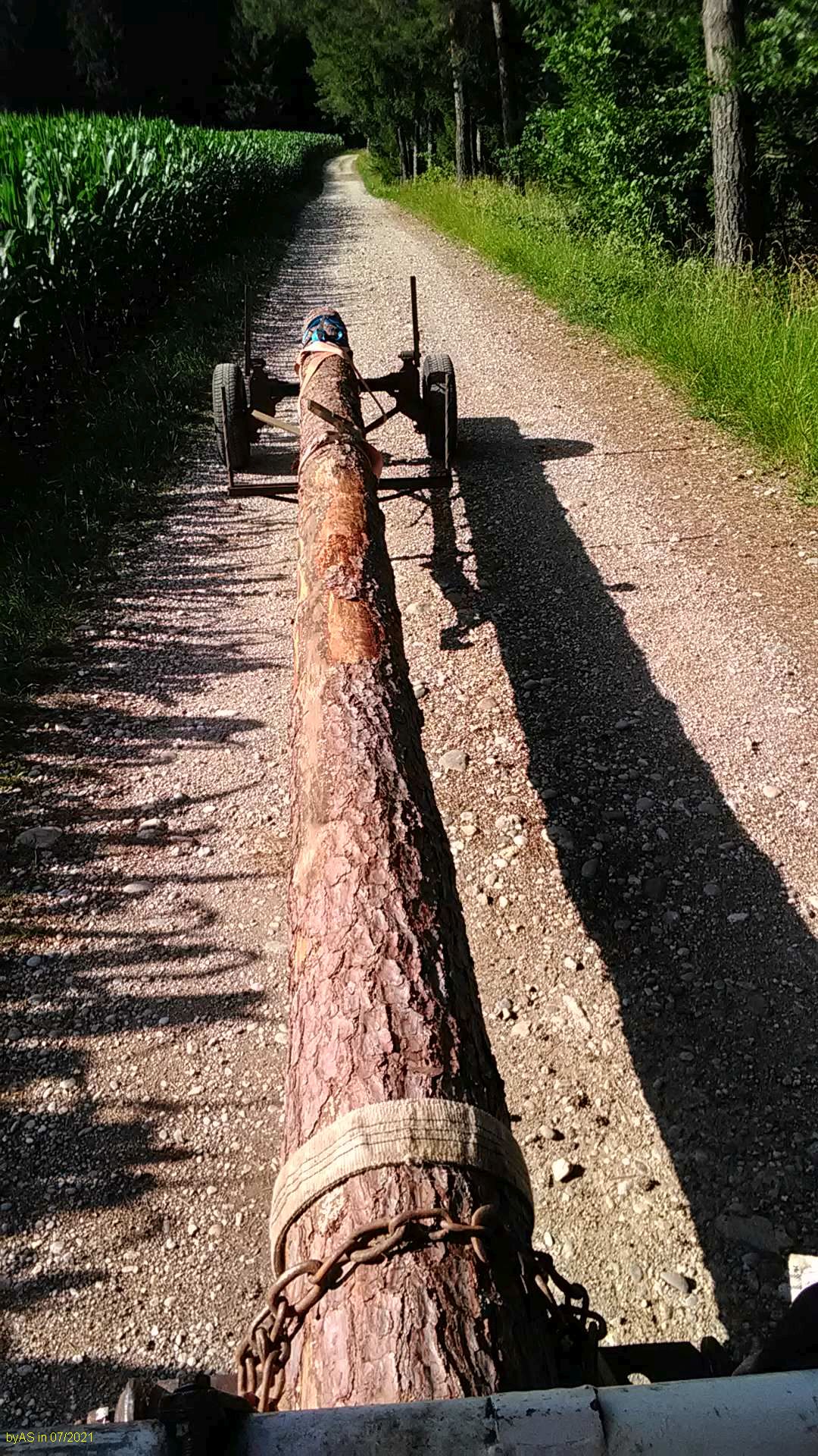 Falke hat geschrieben:Hab' heute erstmals einen 7 m langen Stammabschnitt (Zopf 25 cm) nach hause gefahren (so was hat bisher ja der Holzkutscher mit dem LKW ins Sägewerk gefahren). Ging ganz gut.