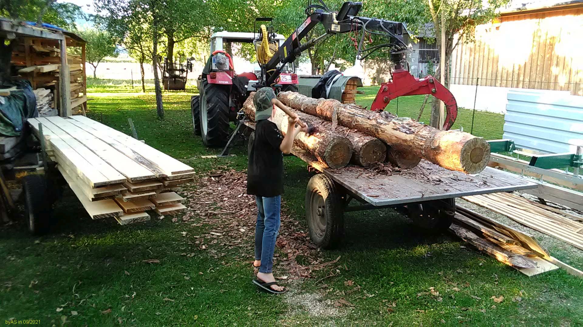 Beim Nachhausefahren wird natürlich wieder eine Ladung Meterholz mitgenommen ...