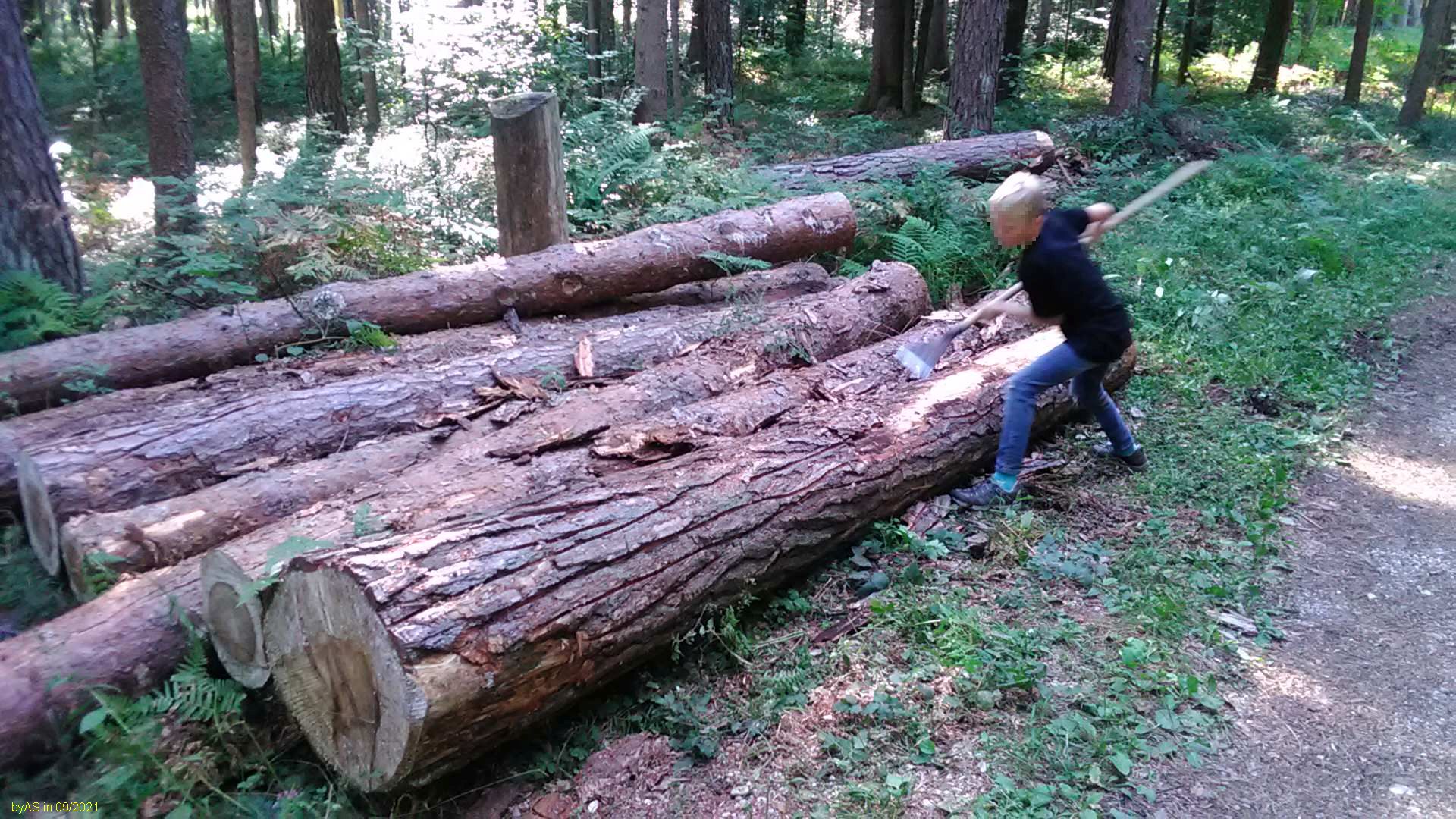 Heute ging es trotz dreier Blasen auf eigenen Wunsch des Buben in den Wald - denn da liegen noch paar Objekte zum Auspowern!