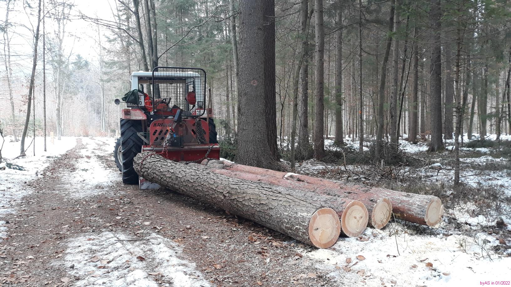 Waldameise hat geschrieben:3 Eichenstämme (zus. ca. 3,5 Festmeter = 4,2 t) gefahren mit unserem restauriertem Langholzwägelchen.