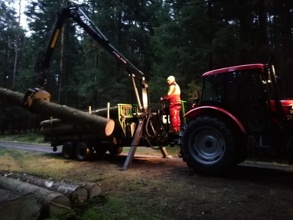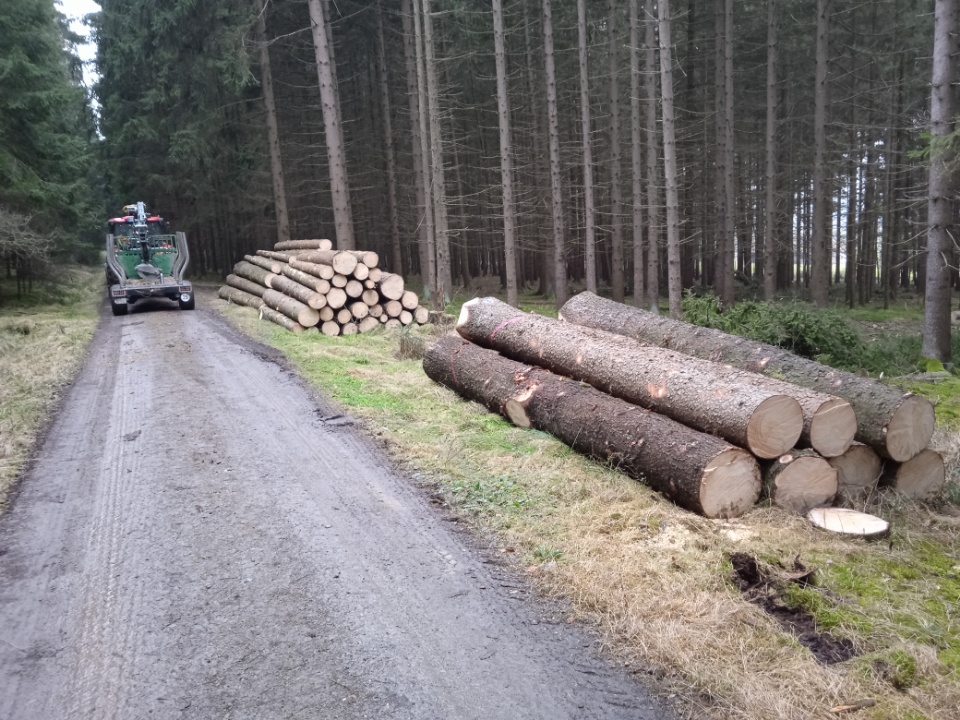 Ich poltere immer ungefähr 30 FM Fichte/Kiefer frisch für eine Fuhre. Bis dato haben die Holzkutscher das immer mitgenommen, denke wenn ich so grob kalkuliere 30x0,8 to + Fahrzeug dürfte er noch an der Grenze des legalen sein, natürlich je nach Fahrzeug.