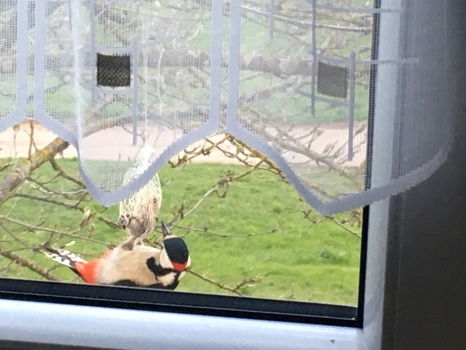 Habe letzte Woche ein Kuriosum beobachtet. Ein Specht hat sich an den Meisenknödel gehängt und die Körner gefressen.