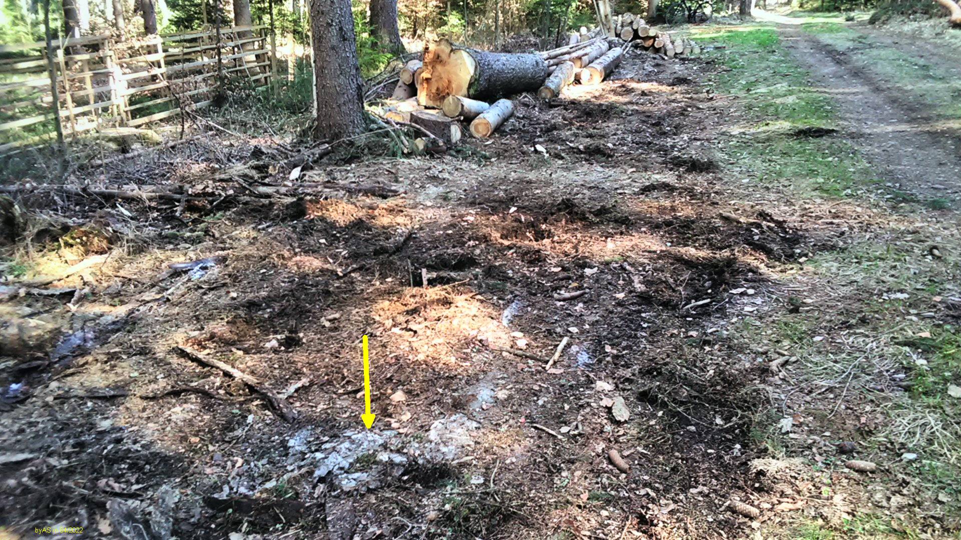 )Erstaunlich, wie gut Holz (thermisch) isoliert. Unter dem Polter waren noch Reste von Schnee und Eis!