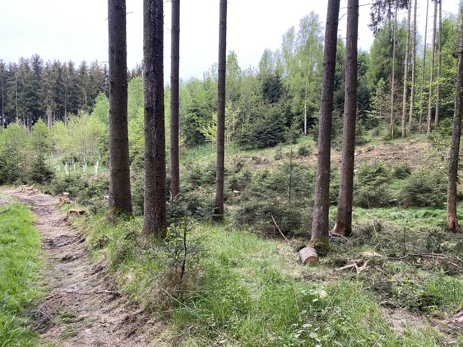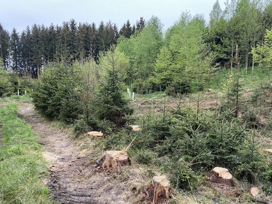 Bei den Lärchen habe ich mir beim einfädeln in die Wuchshüllen mit so einer Trägerrolle von diesen blauen Putztuchrollen beholfen. Vor der dem einpflanzen die Lärche mit der Wurzel voran in die Papprolle eingeführt, dann eingesetzt, Wuchshülle drüber gestülpt und zuletzt die Papprolle abgezogen.