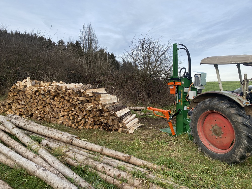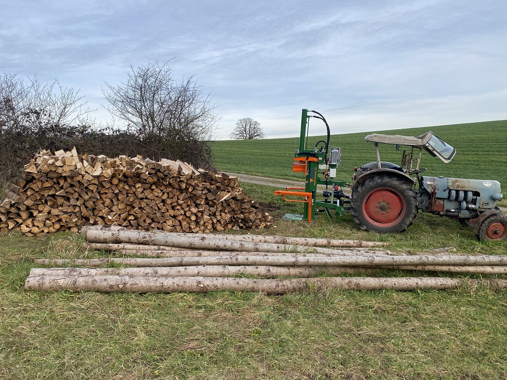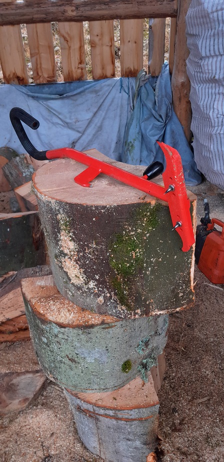 Sie hat eben gegenüber der Sappi den Vorteil, dass Du die starken Meterrollen mit einem längeren Hebel aufstellen und bei genug Übung auch damit in den Stehendspalter hinein stellen kannst.