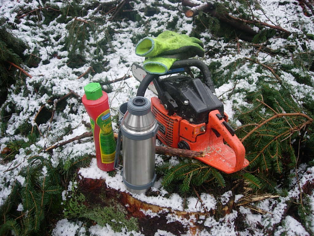 Ich habe auch noch ein paar Fotos von gestern. Vormittags noch den Rest der Buchen von letzter Woche aufgearbeitet und Nachmittags mit dem Fixlängeneinschlag begonnen.