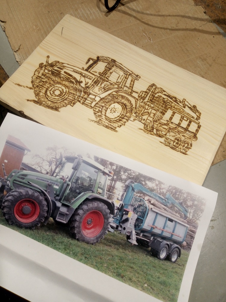 Fendtman hat geschrieben:Zwar keine Waldarbeit aber ein Ergebnis davon ... habe mich etwas in Brandmalerei versucht ... ausbaufähig, aber man erkennt was es sein soll =)