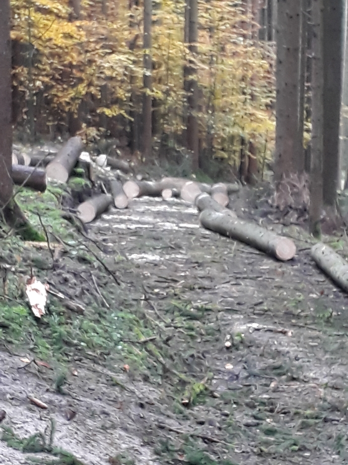 Ja, die hängen sowohl im Privatwald, in diesem Fall in meinem als auch im Staatswald.
