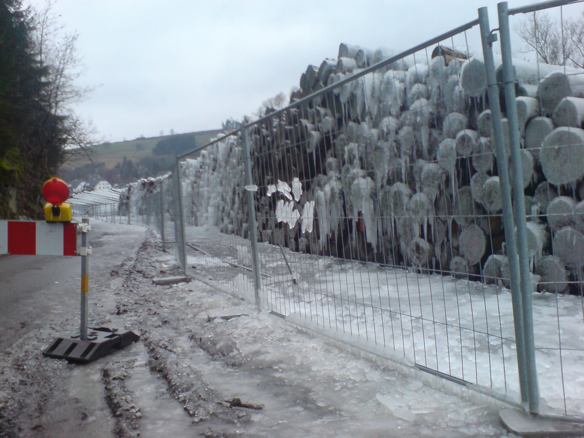 die bilder sind nur vom anfang des platzes, nach ca 100m ist das holz dann quer gepoltert in gassen die so 50 - 60 m lang sind. da kommen dann drei gassen wo jeweils nach rechts und links aufgepoltert ist.