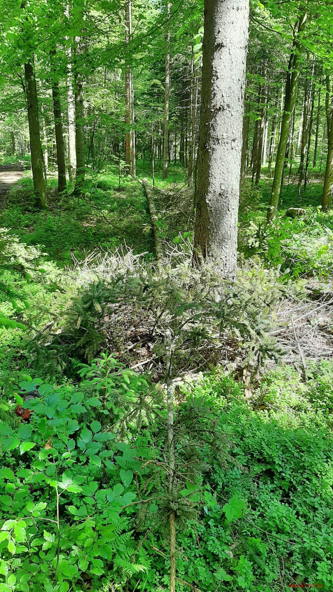 Aus bestem Acker, östlich von München, ca. 450 Meereshöhe, leichte Südneigung, wird neuer Nadelwald, stand jetzt Tanne Monokultur.