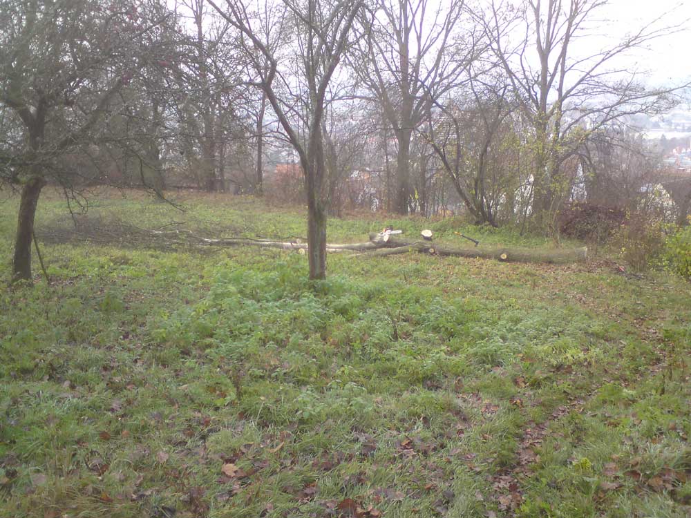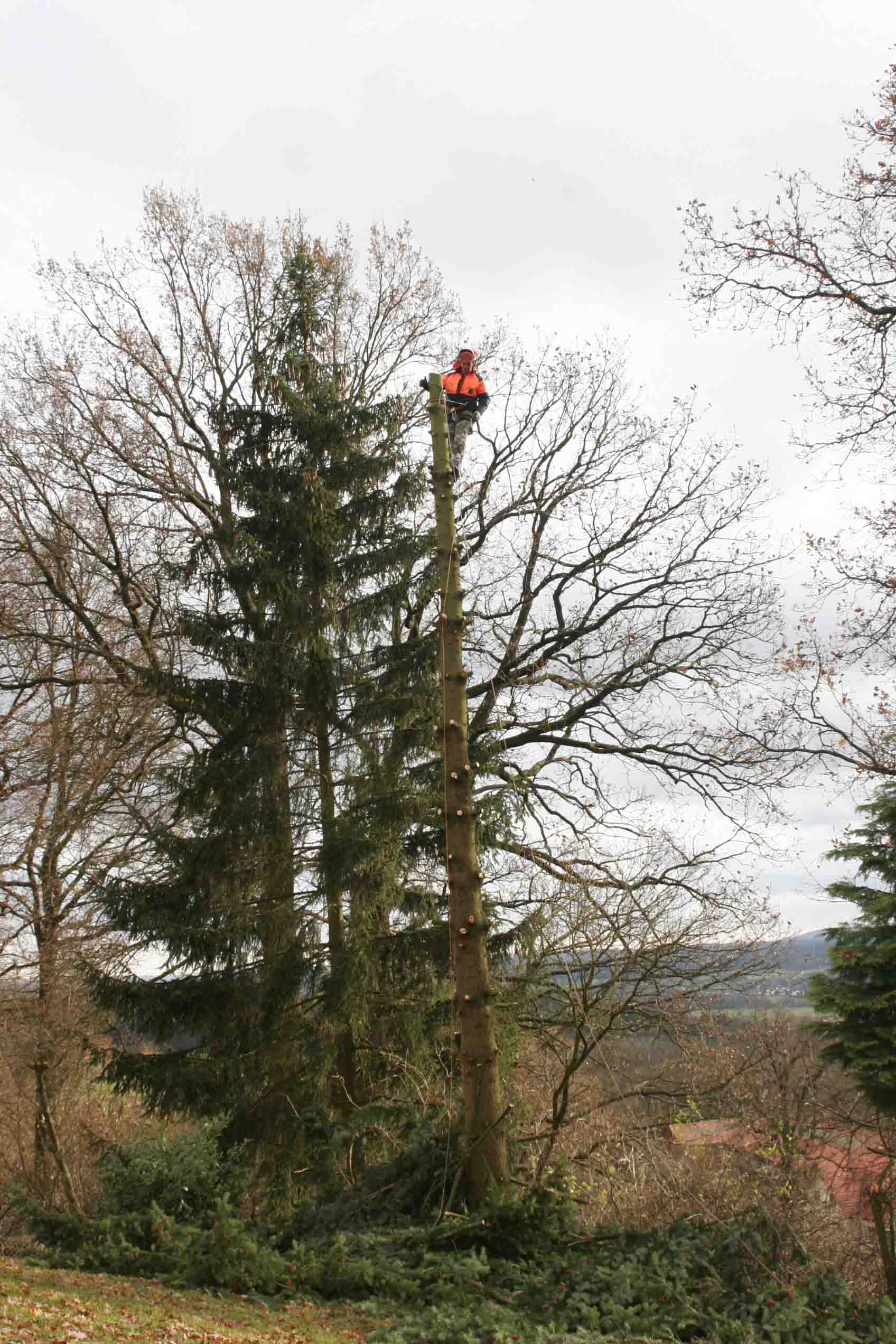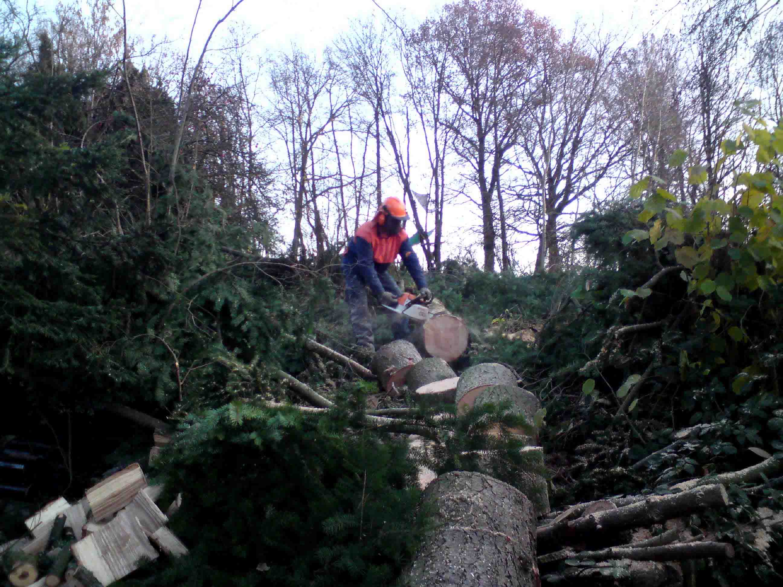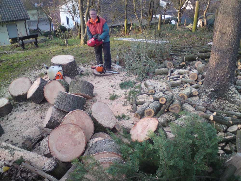 Mal noch was von mir...hab mal schnell ne vom Sturm geköpfte Kiefer klein gemacht..Geht um die mittlere hinten die so schräg steht...