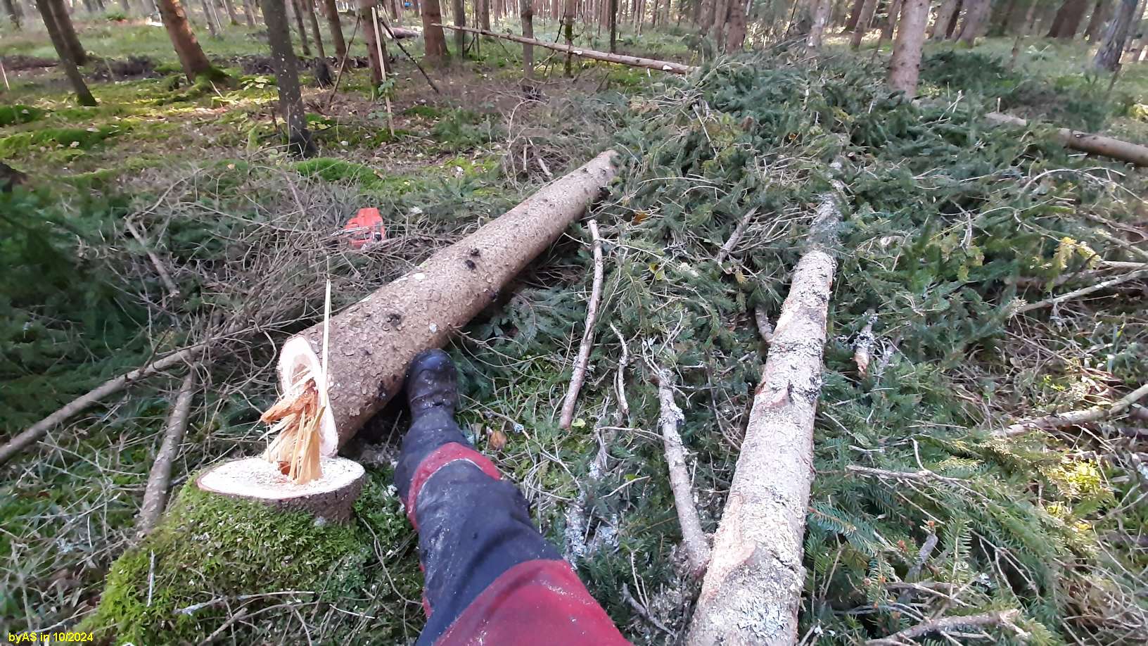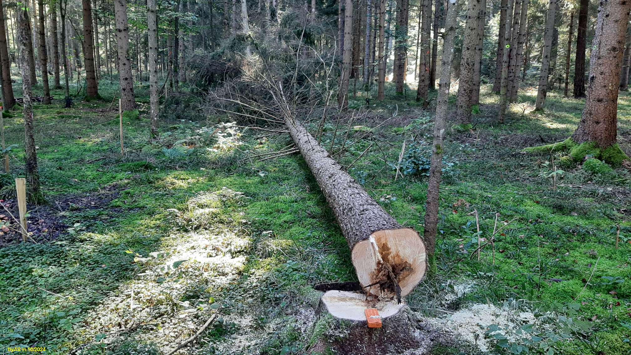 Beim Kontrollieren der aufgeforsteten Douglasien hab ich starken Harzgeruch in der Nähe der Fichten war genommen. War ein Volltreffer, der Sturm hat einen komplett faulen Baum fast abgerissen, natürlich schon mit Harztropfen an der Rinde, auch im Umkreis haben wir noch paar Befallene gefunden.