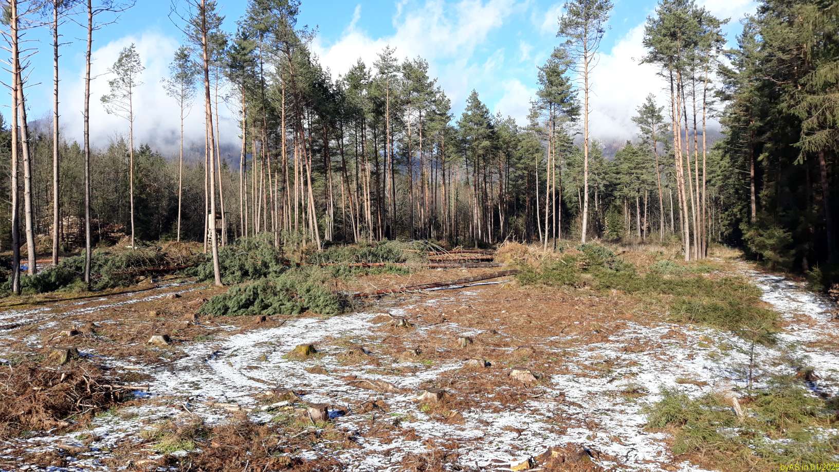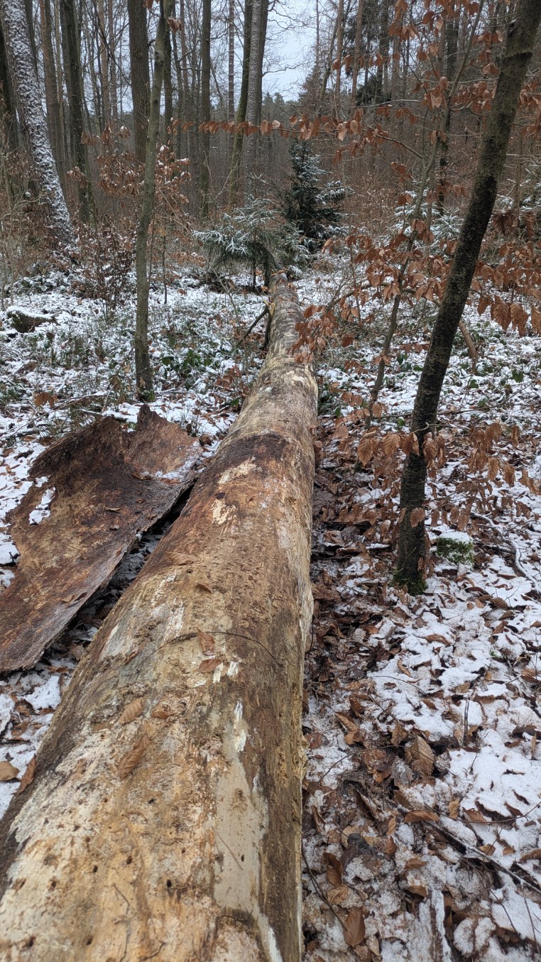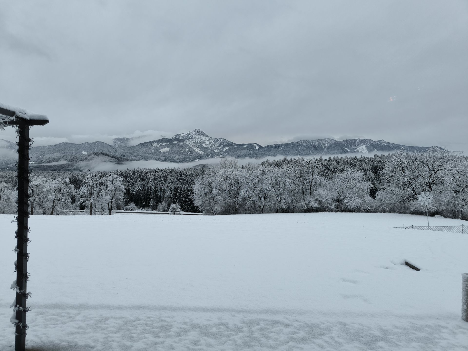 Es sind nur 7-8cm Schnee, es ist sehr windig und hat aktuell +3°C. Die Wiese lacht schon wieder durch.