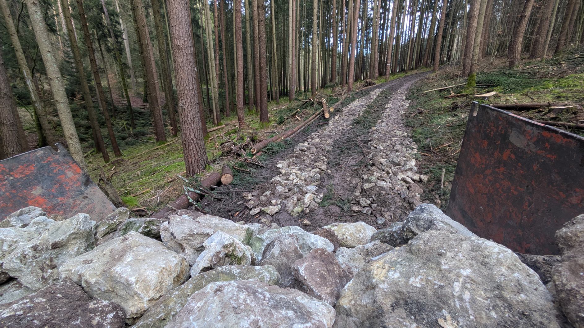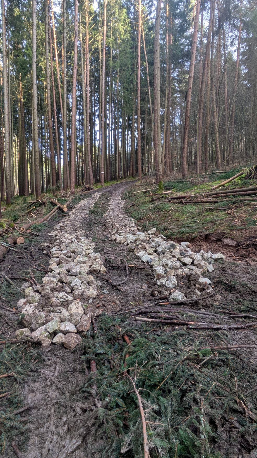 Liegen die szämme auf kläger oder direkt am boden? Oder hast nur am anfang und ende so schräge stämme gegen wegrollen plaziert? Hast echt schön gerade aufgerichtet respekt