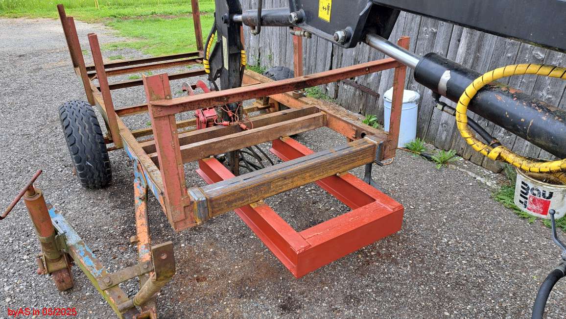 Jetzt wird der Kran näher an der Ladefläche sein. Der kommt auf eine Verlängerung der bestehenden Deichsel.