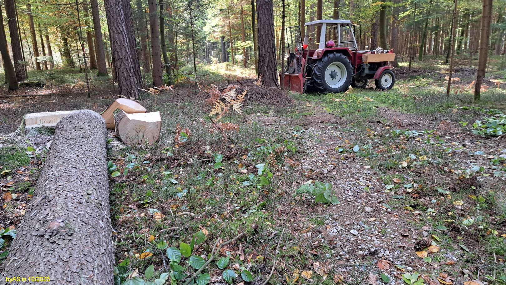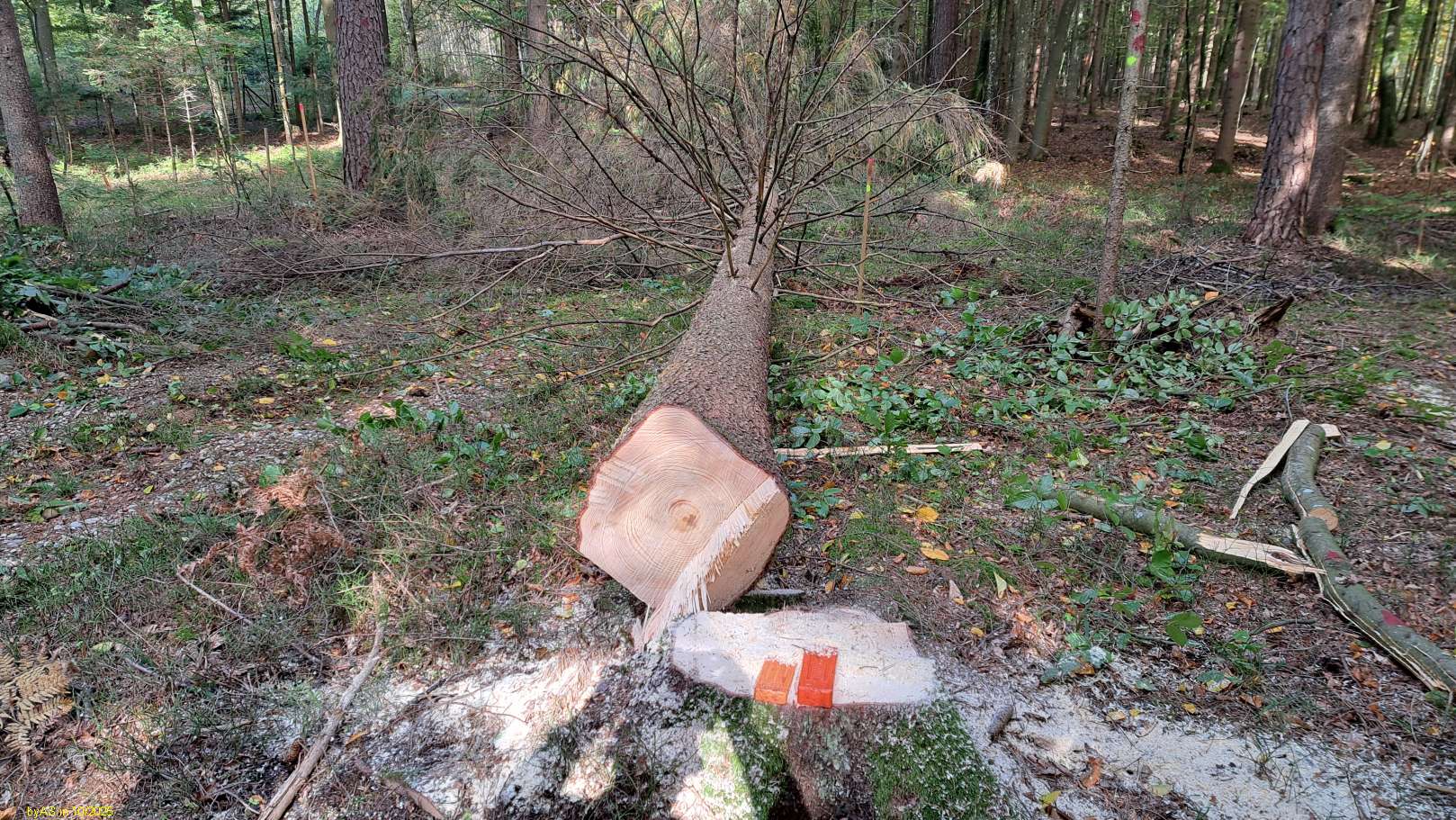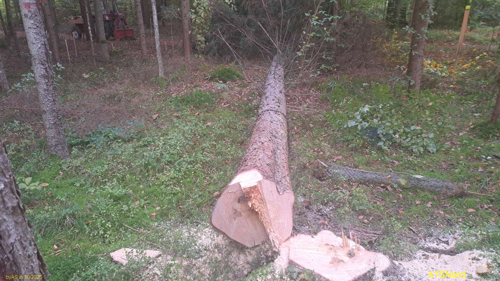Mit 100 cm Fuß-DM kann ich nicht dienen, hier auf dem Schotter sind viele Fichten schon mit etwa 40 cm BHD "hiebreif".