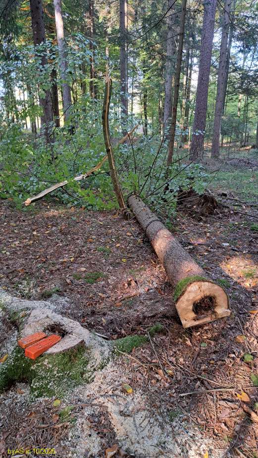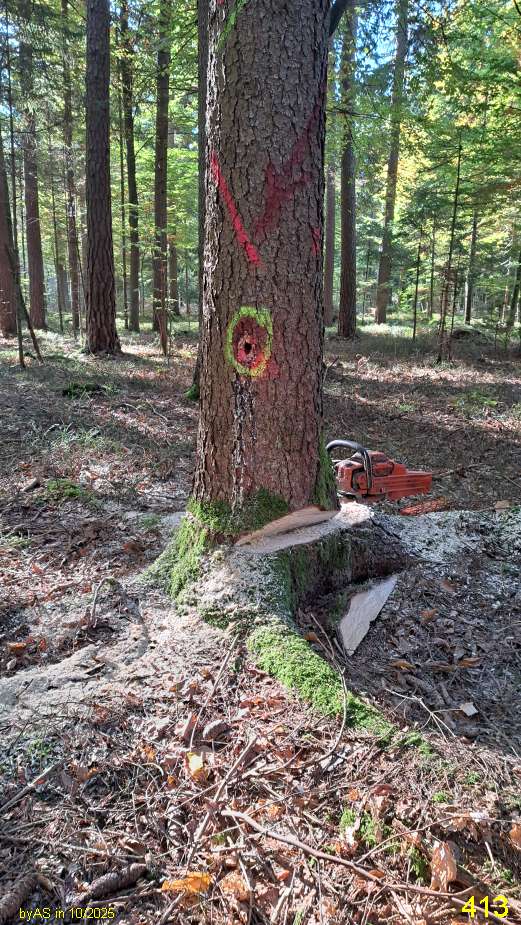 das ein Anzeichen für beginnende Wurzelfäule - voilà. Nach 2 x 33 cm war der Stamm aber schon gesund ...