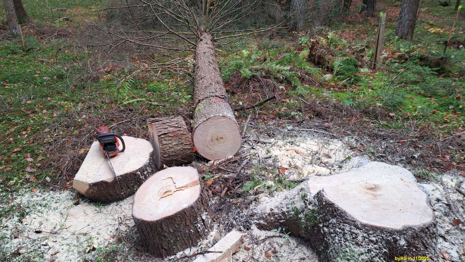 Das Holz gehört dem Bruder und ist für die Schreinerei, mangels an Lagerplatz wird er sich wohl von einigen Stämmen trennen.