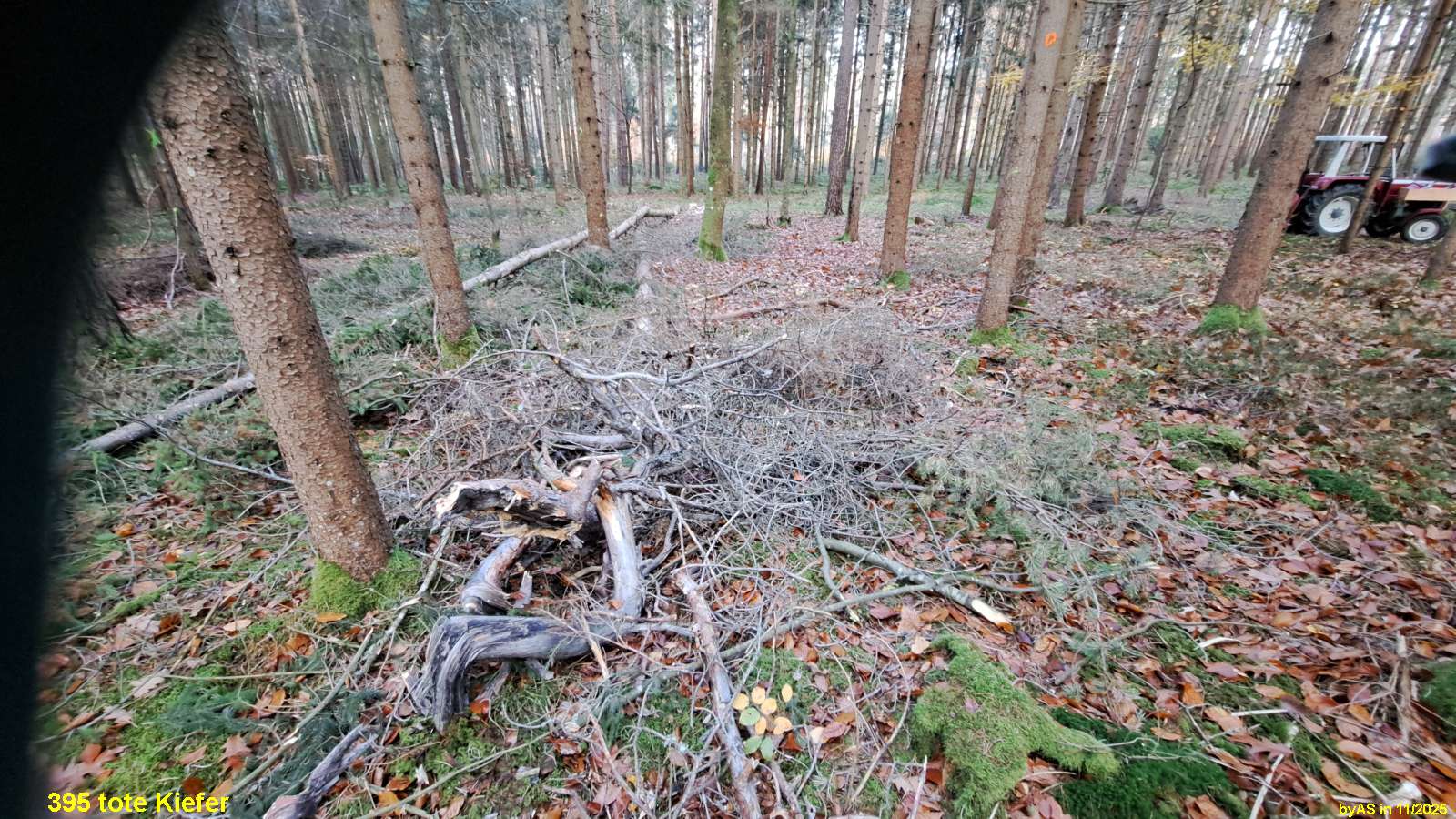 Sind noch zwei so Kipperladungen mit Eichen, die Enden wurden zuvor mit Metallspannbändern umreift.