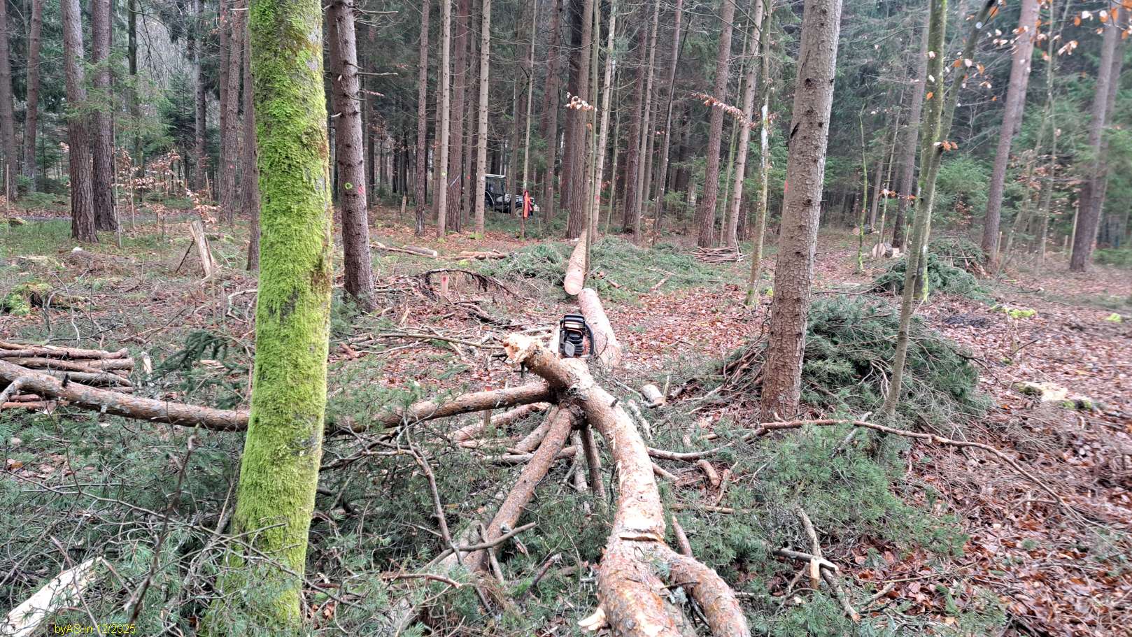 Zusammen mit dem Nachbarbetrieb am Nachmittag des 2. Tages sind innerhalb von knapp 15 Maschinenstunden ca. 110 Ster Holz verarbeitet worden.
