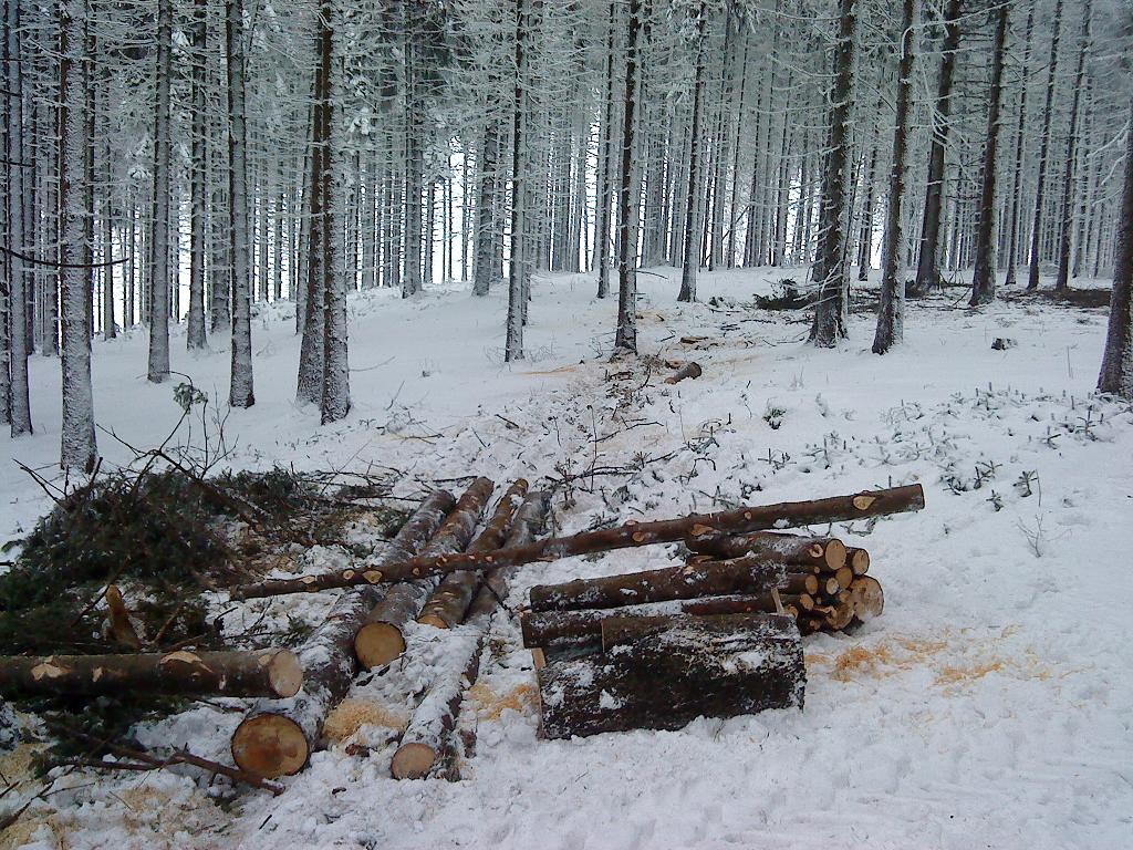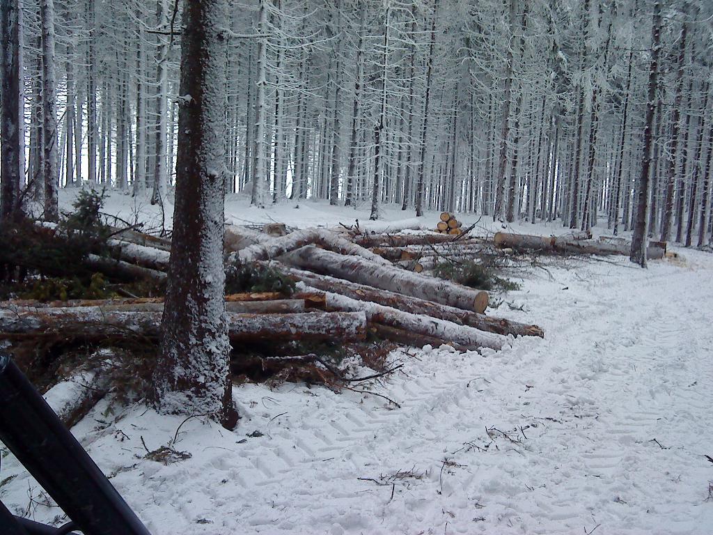 Ich war gestern auch mal wieder etwas drausen. Hatte noch ne Ecke Käferholz wo jetzt durch den Frost erst sichtbar geworden ist, dass es Käferholz ist. Hab mich dann gleich an die Arbeit gemacht. Die Tage werd ichs mal noch mit dem Rückewagen raus fahren. Bis jetzt ist es nur so weit zum Weg gezogen, dass ich aufladen kann.
