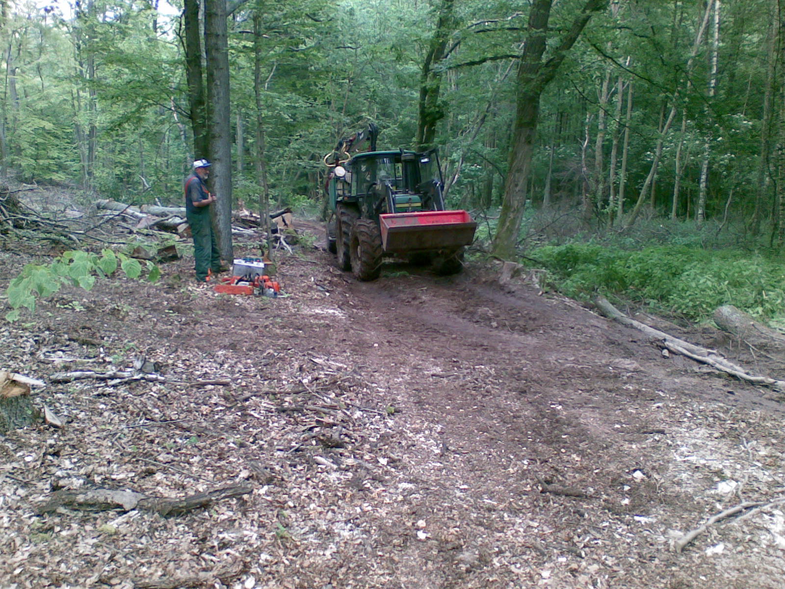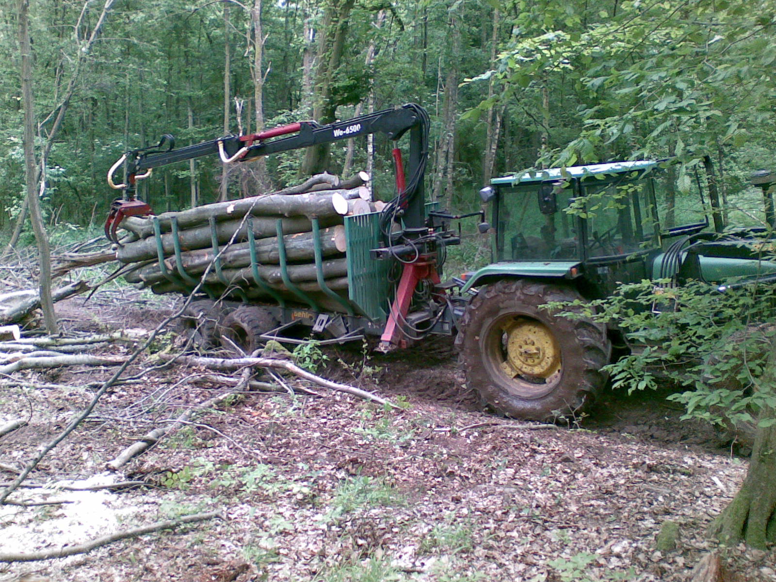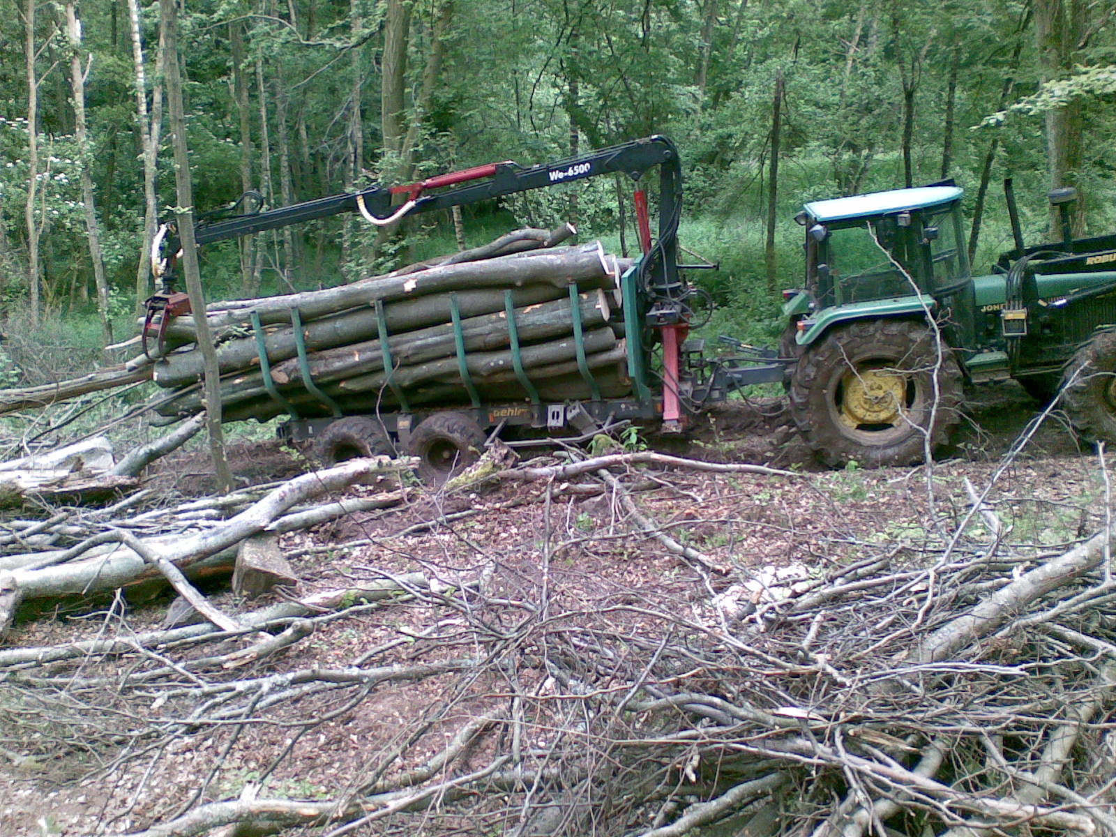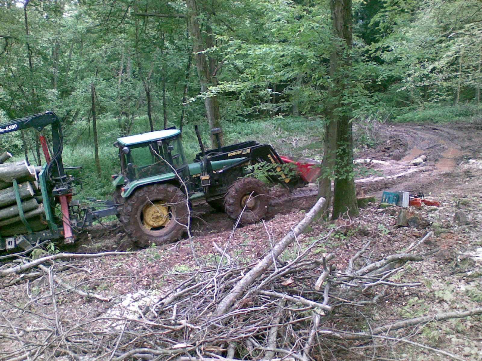 Hallo, mal ein paar Bilder von letzter Woche, ca. 150 fm Buchenbrennholz über etwas schlammige Rückegasse abgefahren. Leider konnte ich keine Bilder vom Schlepper mit Rückewagen während dem Abfahren machen, da ich dann mit Sicherheit stecken geblieben wäre. War echt froh, als ich fertig war, nachdem auch die Stämme über die ich gefahren bin, im Schlamm zu versinken drohten, wurde es schon heftig, immer kurz vorm steckenbleiben und kurz vorm umkippen........... leider nur Handybilder, hatte keinen Foto dabei