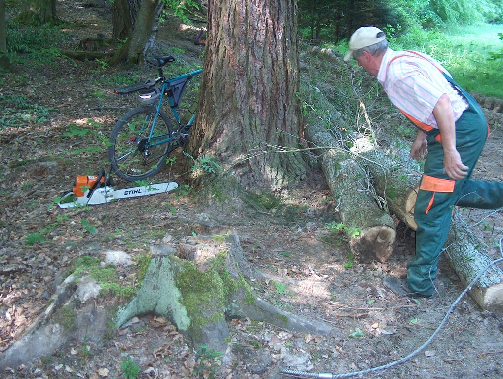 Wir besäumen eigentlich das wenigste auf dem Besäumer. Die meisten Bretter lassen wir direkt im Gatter sägen und schieben nur die noch halbwegs brauchbaren Schwarten über den Besäumer.