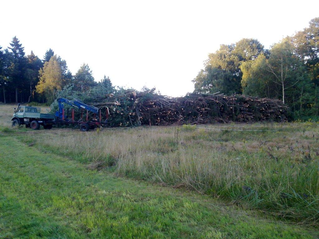 Hallo ja dann will ich auch helfen um die 1000 zu erreichen. Dieses Bild ist von einer Durchforstung im Sommer, der Haufen hat 240 meter Hackschnitzel ergeben.