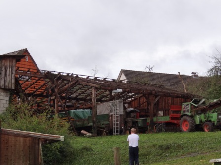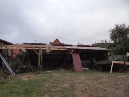 Fertig gelattet und ein paar Balken/Sparren verstärkt bzw ausgewechselt. Wobei der unterste Balken zu den Silos der schlimmste war, 7m lang, 20x16cm und die Höhe über der max. Hubhöhe des Frontladers, dh da war auf neudeutsch Menpower gefragt: