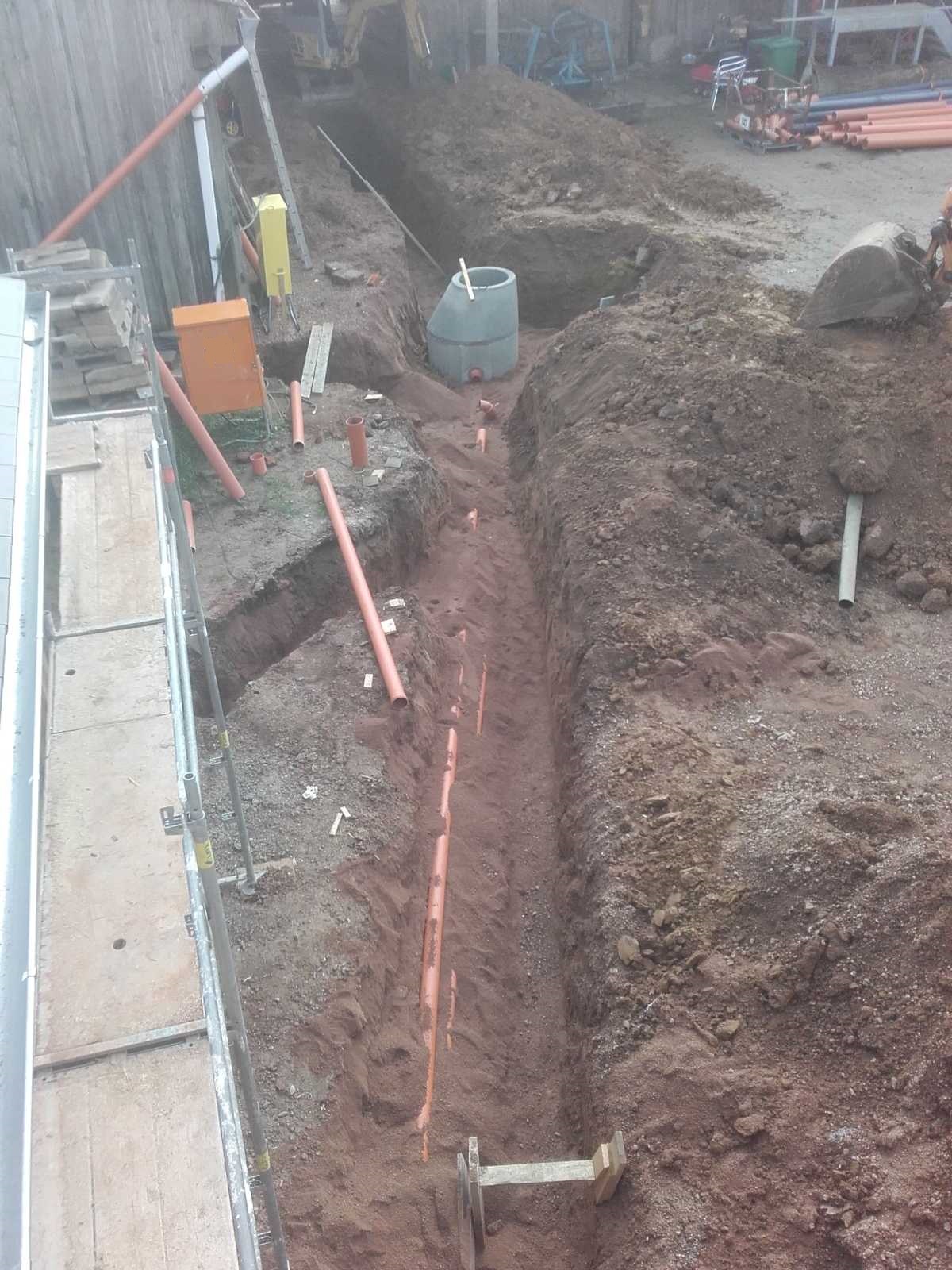 So die Hälfte ist drauf, die Seitenanschlüsse wurden am nächsten Tag gemacht, da ein Helfer am nächsten Tag nur bis zum Mittag Zeit hatte und die Anschlüsse im Gegensatz zu den Platten keine zwei (bzw. vier) Mann erfordern: