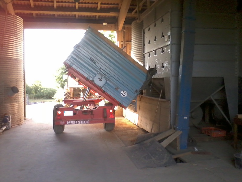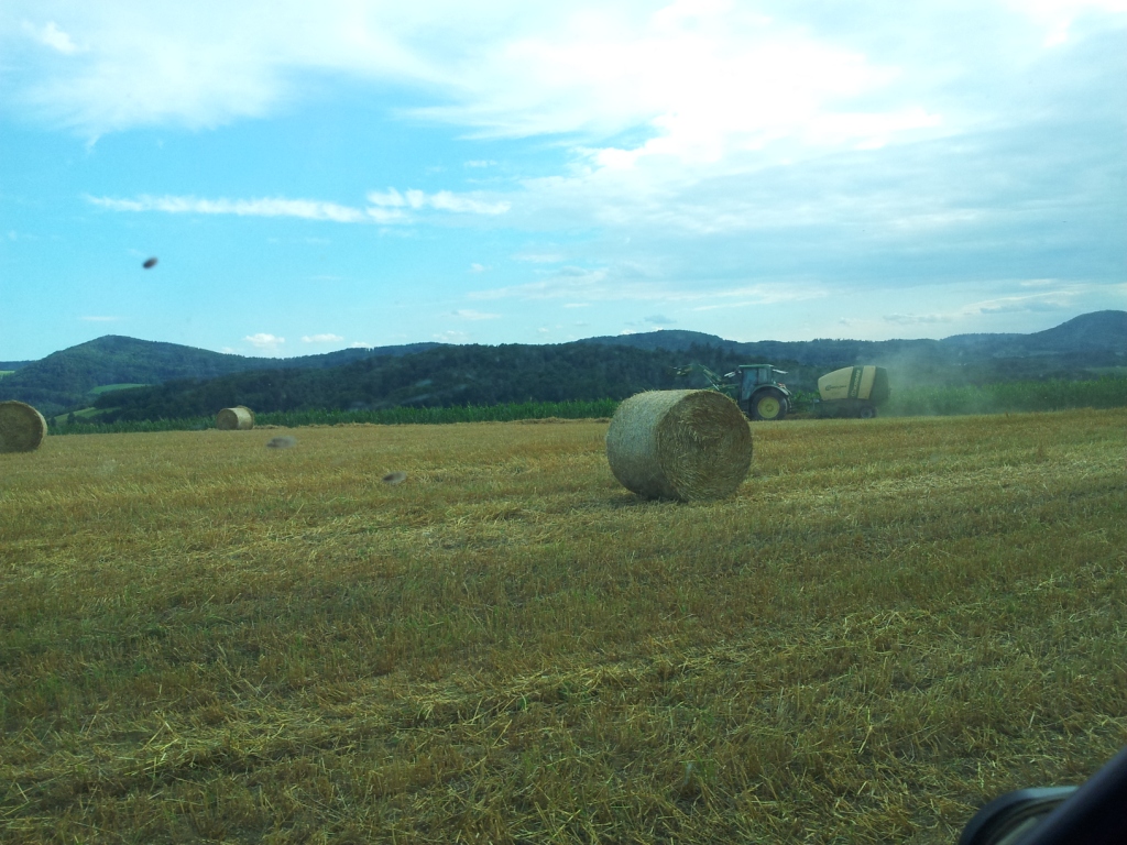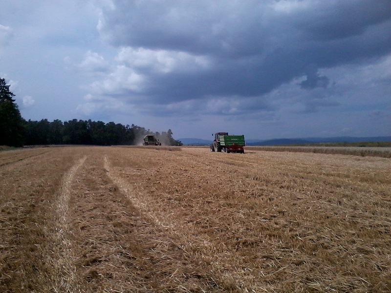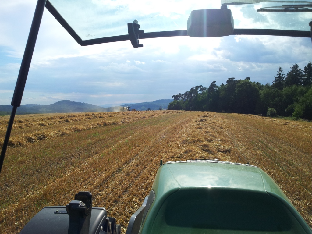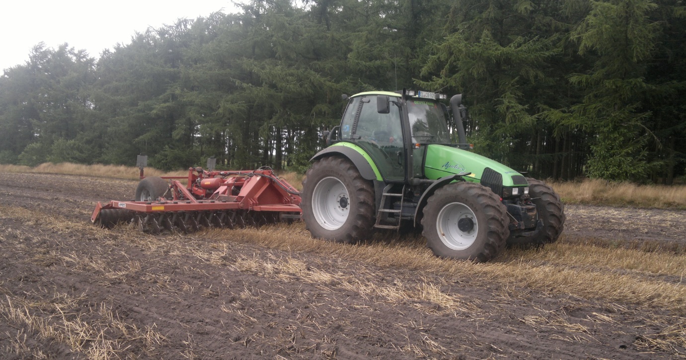 Am Samstag das Weizenstroh eingegrubbert mit einer Scheibenegge, nachdem es am Freitag geregnet hat und der Boden nicht mehr so hart war. Diese haben wir uns ausgeliehen, um mal zu sehen, wie eine solche arbeitet.