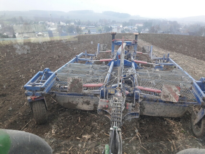 @Wolvi, Der Grubber hat 50'ziger Federzinkenkrindel. Bei Zug kommt Spannung drauf und das Netz bzw. die Lappen vorne sind Lebensnotwendig, weil sie das vorschleudern von Erde und Steinen verhindern. Ganz ungünstig bekommt man doch was ab, wie man beim ersten Bild an der Heckscheibe etwas sehen kann. Da bin ich in Deckung gegangen und froh das die Scheibe noch ganz ist. War irgendwas festes im Untergrund, ein Zinken gebrochen und der daneben die volle Ladung doch hochgeschleudert.