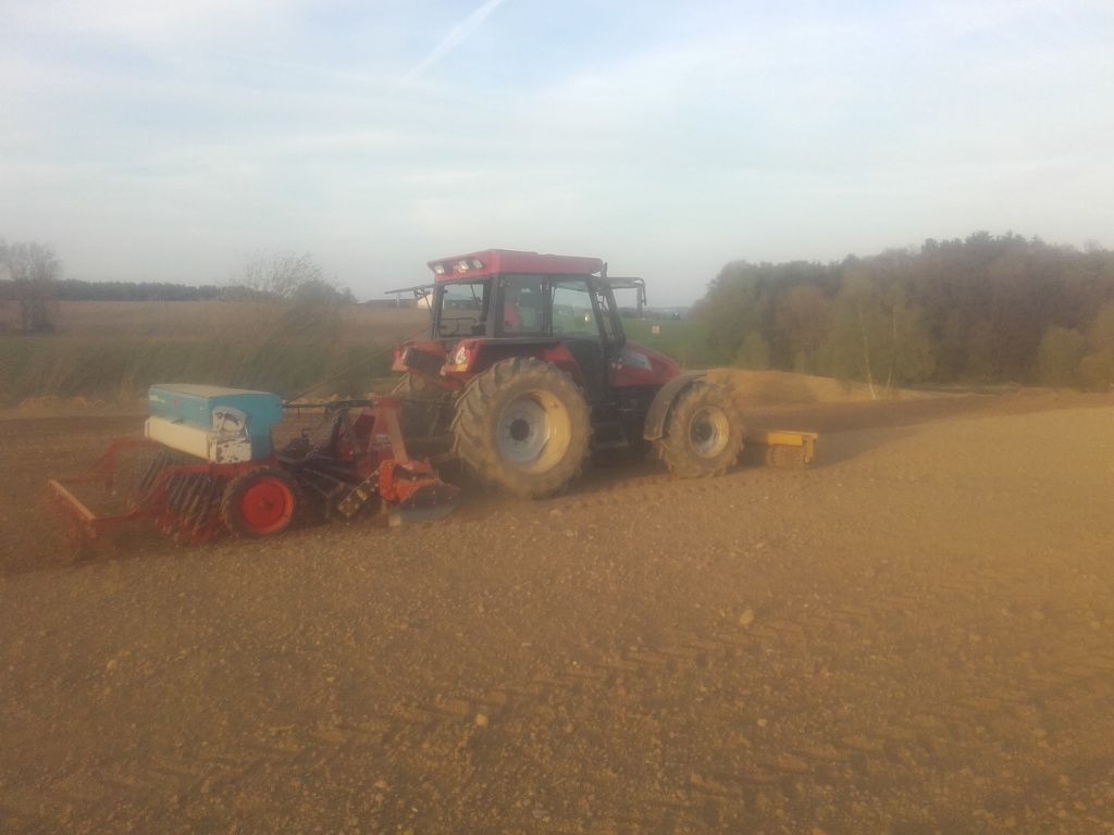 Heinrich Löwe hat geschrieben:Heute vorgearbeitet für Kleegras Aussaat. Das Gerät ist ein Flachgrubber mit Gänsefußscharen, den man außer für Saatbett auch und vor allem zur Stoppelbearbeitung einsetzen kann. Schneidet ganzflächig durch. Der Nachläufer ist eine doppelte Sternwalze, die Wurzeln (Quecke, Ampfer) auf die Oberfläche wirft, wo sie abtrocknen. Damit habe ich in kürzester Zeit Problemflächen saniert.