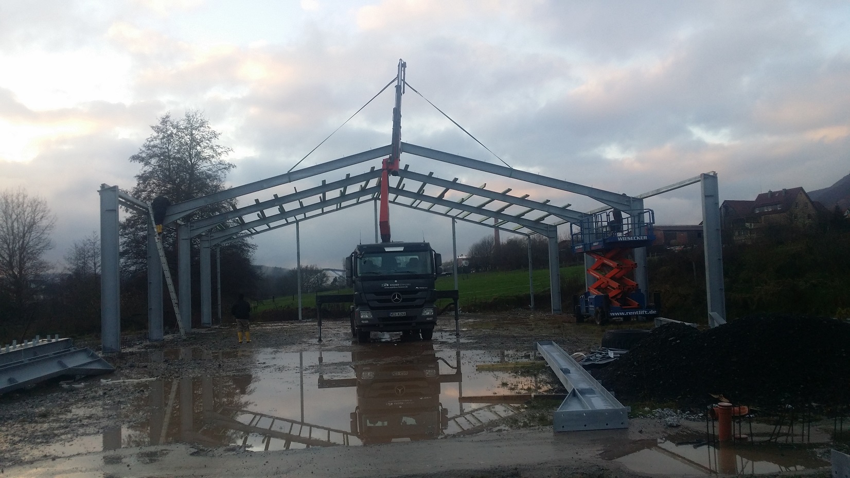 Wie groß wird die Halle. Wird wohl eine Maschinen und Futterhalle....