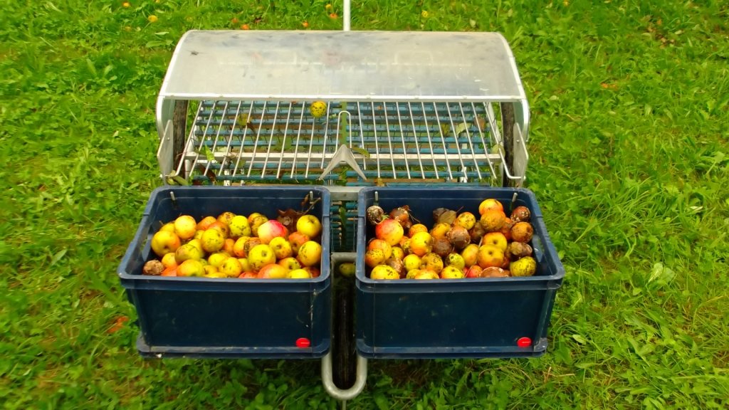 Hallo, Das Teil nennt sich "Obstigel" und gibts von mehreren Herstellern. Der Durchsatz ist beeindruckend allerdings funktioniert das nur wenn man unmittelbar vor dem Keltern die Äpfel aufliest da sie beim Auflesen angestochen werden.