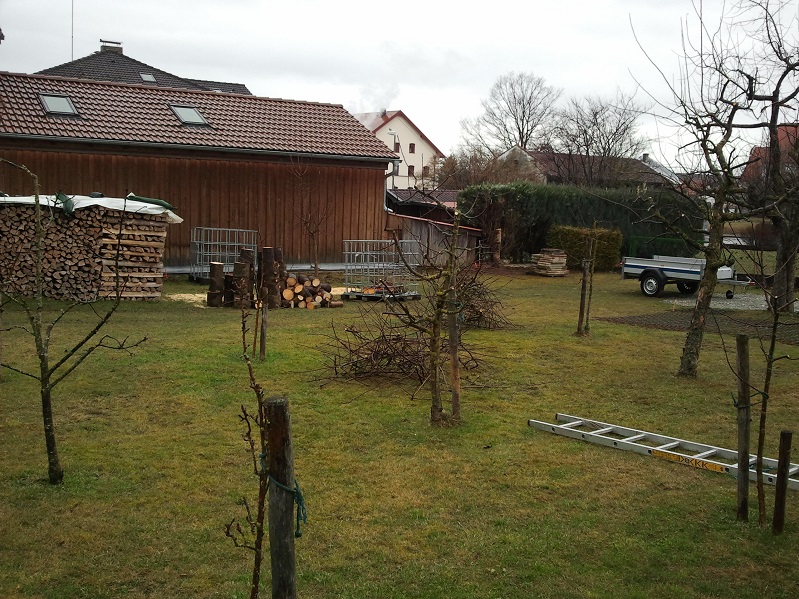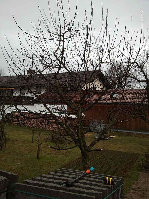 Ich hab heute Obstbäume zugeschnitten da ich die nächsten Wochen eh schon anderbeitig beschäftigt bin und der Boden für irgendwas anderes zu nass ist.
