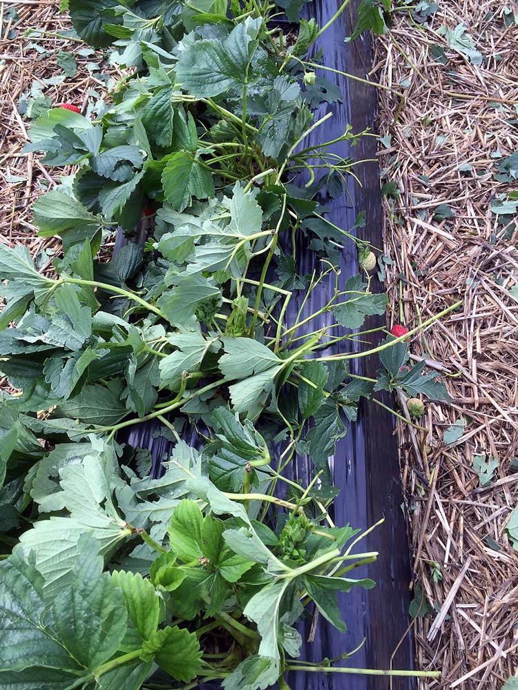 Schön war, das die späten weitgehend heil durch den Regen gekommen sind - ohne Spritzen, da Bio. Nur einmal war es denen zu feucht und es waren erhöht aufgeweichte und wegen feuchtem Stroh angefaulte Erdbeeren dabei. Nur sind die bei dem Wetter in Zeitlupe nachgereift.