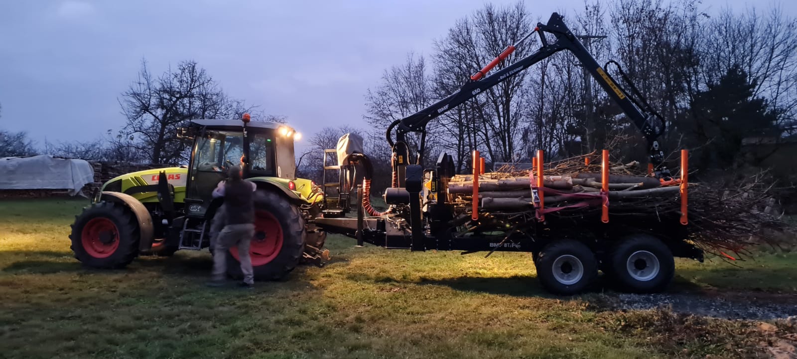 10 to BMF am 125 PS Massey Ferguson Dyna4 mit Zubringerwinde am Frontlader.