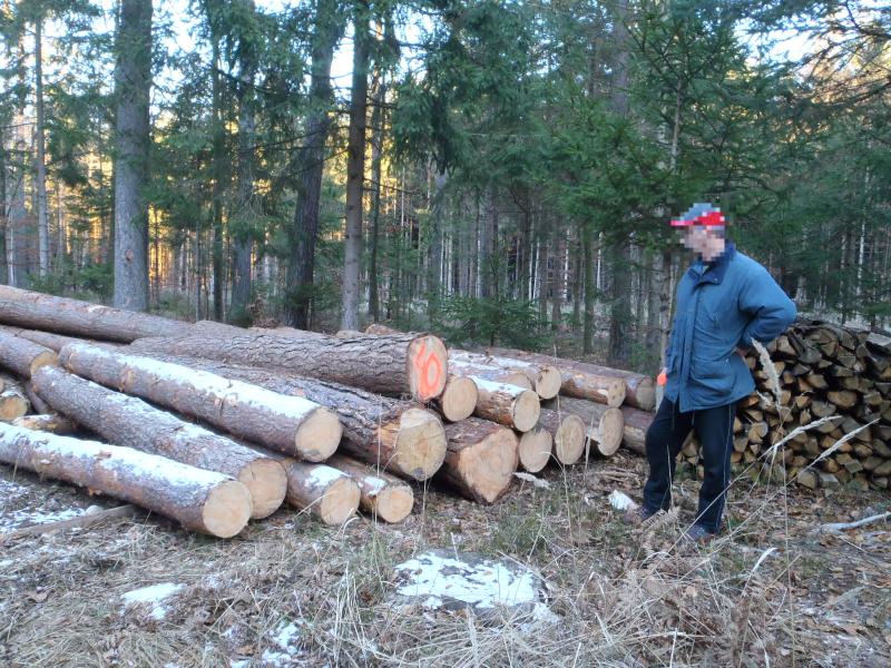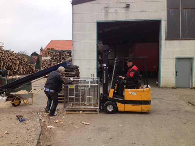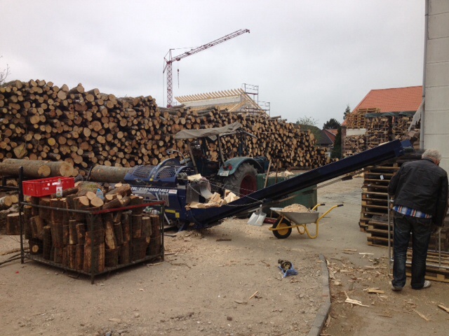 Rinde und Splintholz runtersägen (am besten mit ner Säge ab 5,5 PS damit etwas geht), schmale Streifen, damit der Klotz relativ rund bleibt