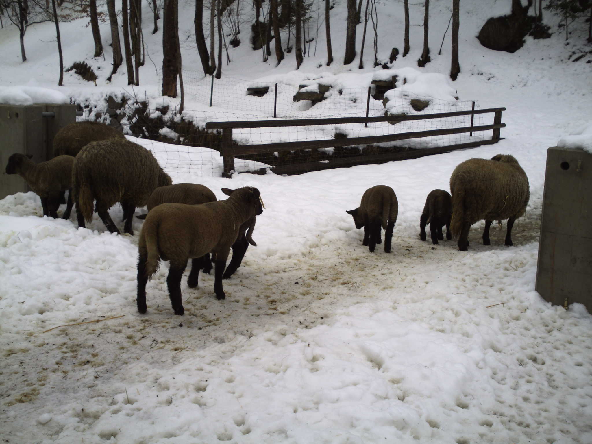 Das ist Poldi neben seiner Mama (Coburger Fuchsschaf), überraschend geboren als das Lammen eigentlich schon lange durch war - EM 08, Deutschland Portugal. Drum heißt er auch Podolski. Leider ist er auf einem Auge blind und kann auf dem anderen auch nicht besonders viel sehen.