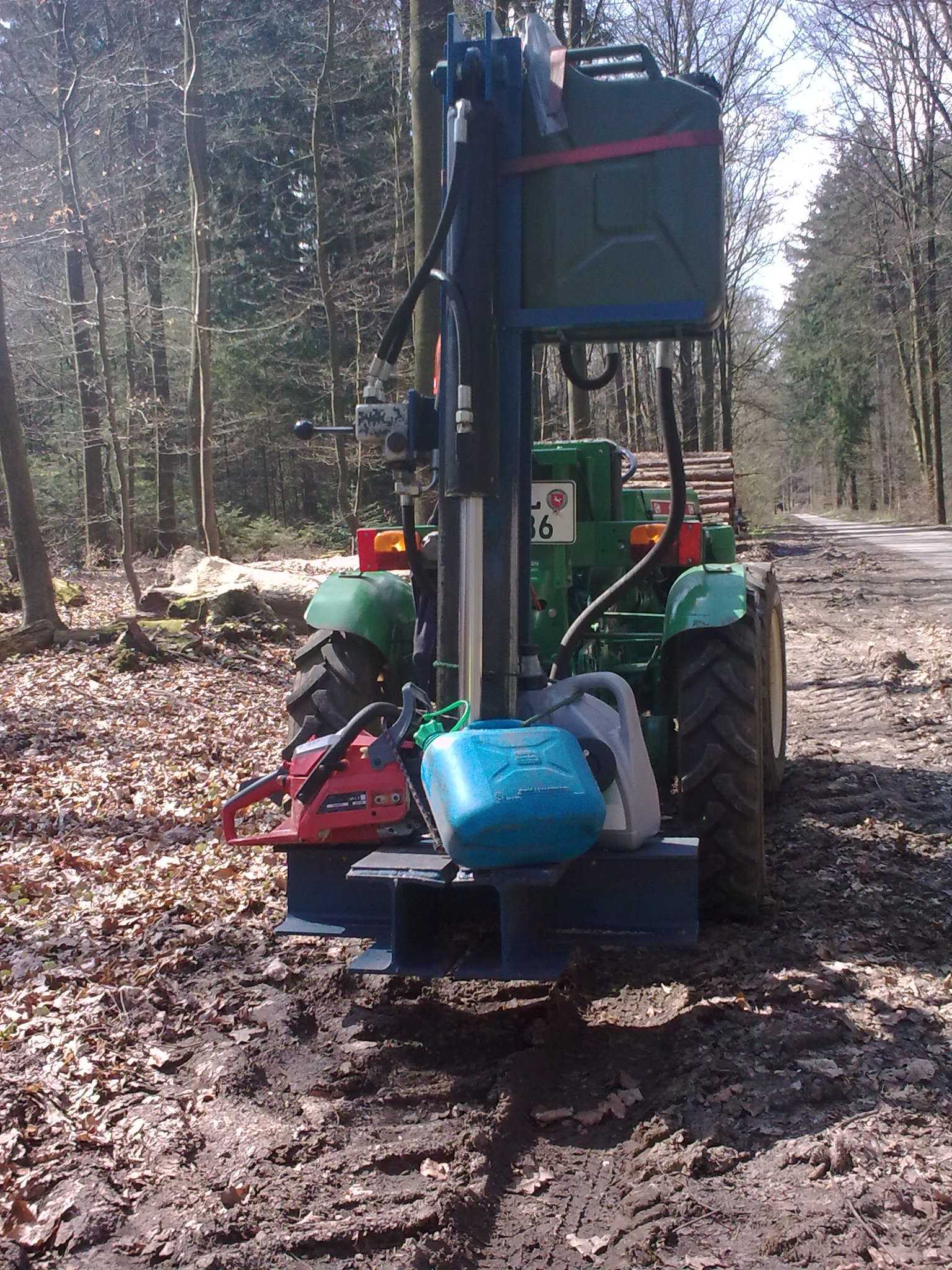 mein AG3 mit 28PS und Spalter, Winde und Tandemhänger (Winde habe ich nimmer)