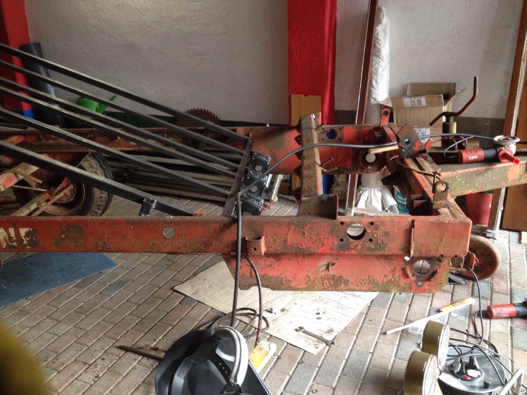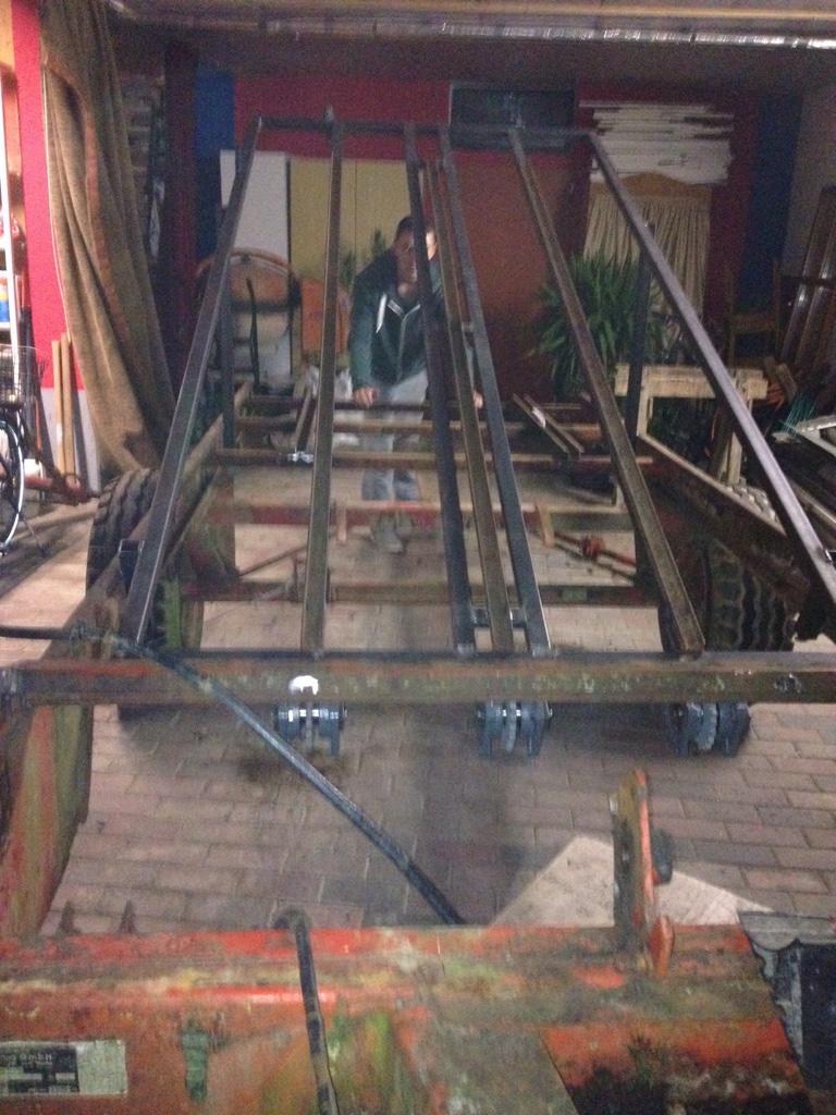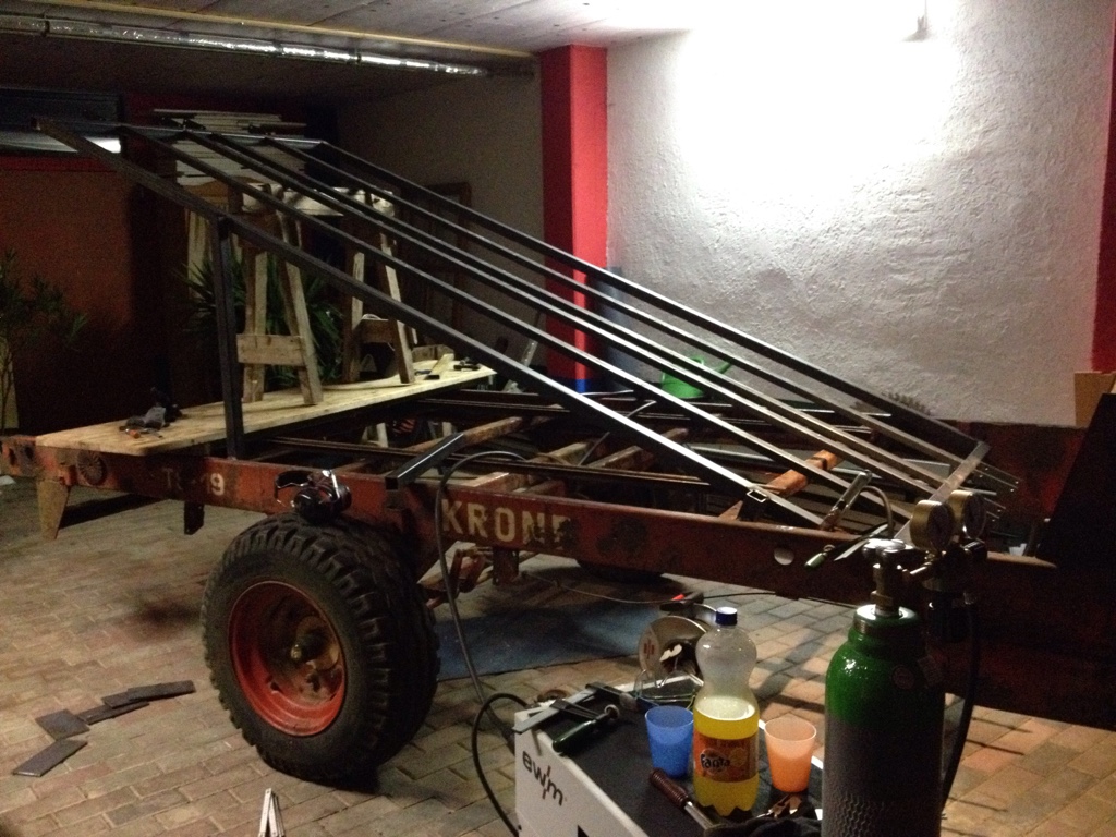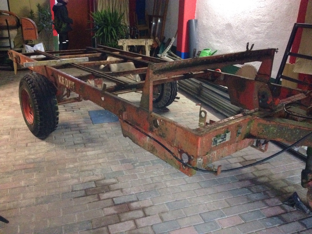Ich habe einen Miststreuer als Fahrgestell ausgewählt, da dieser sehr niedrig ist und man die meterscheite dann nicht so weit hochheben muss. Die schräge habe ich so gewählt, das man dahinter mit einem Anhänger drunter fahren kann und das holz dann gleich dort reinfliegt. Oder wahlweise auch in gitterboxen.