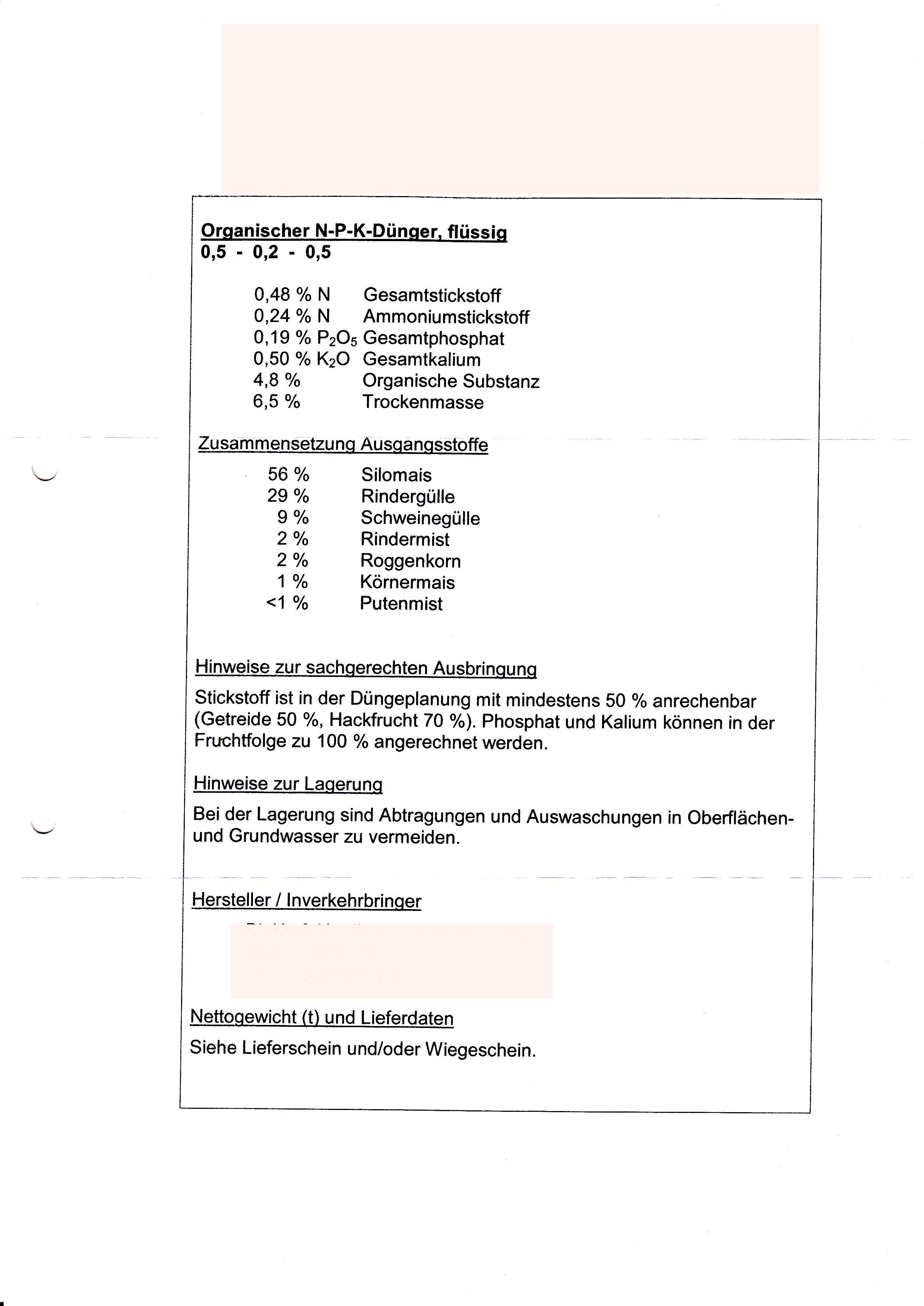 Und was das Substrat als Dünger angeht, so habe ich hier mal eine Nährstoffuntersuchung aus der BGA hier:
