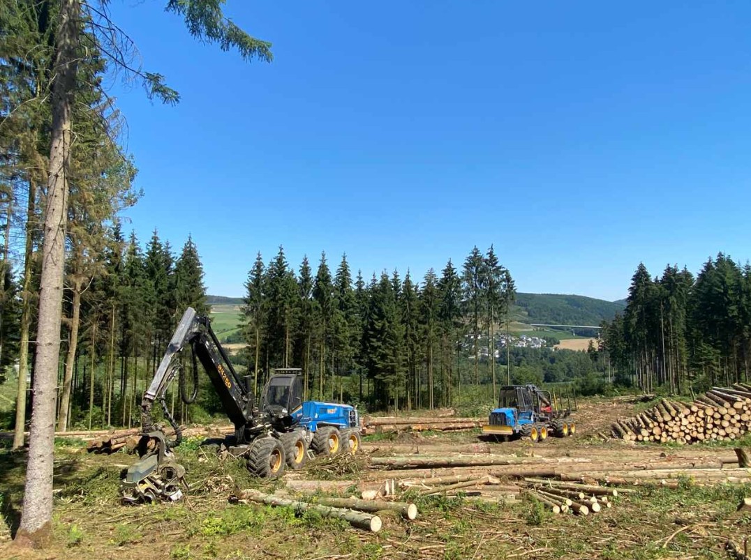 Die Nachfrage ist groß, evtl. zieht er noch einen Forwarder und einen 2. Harvester nach.